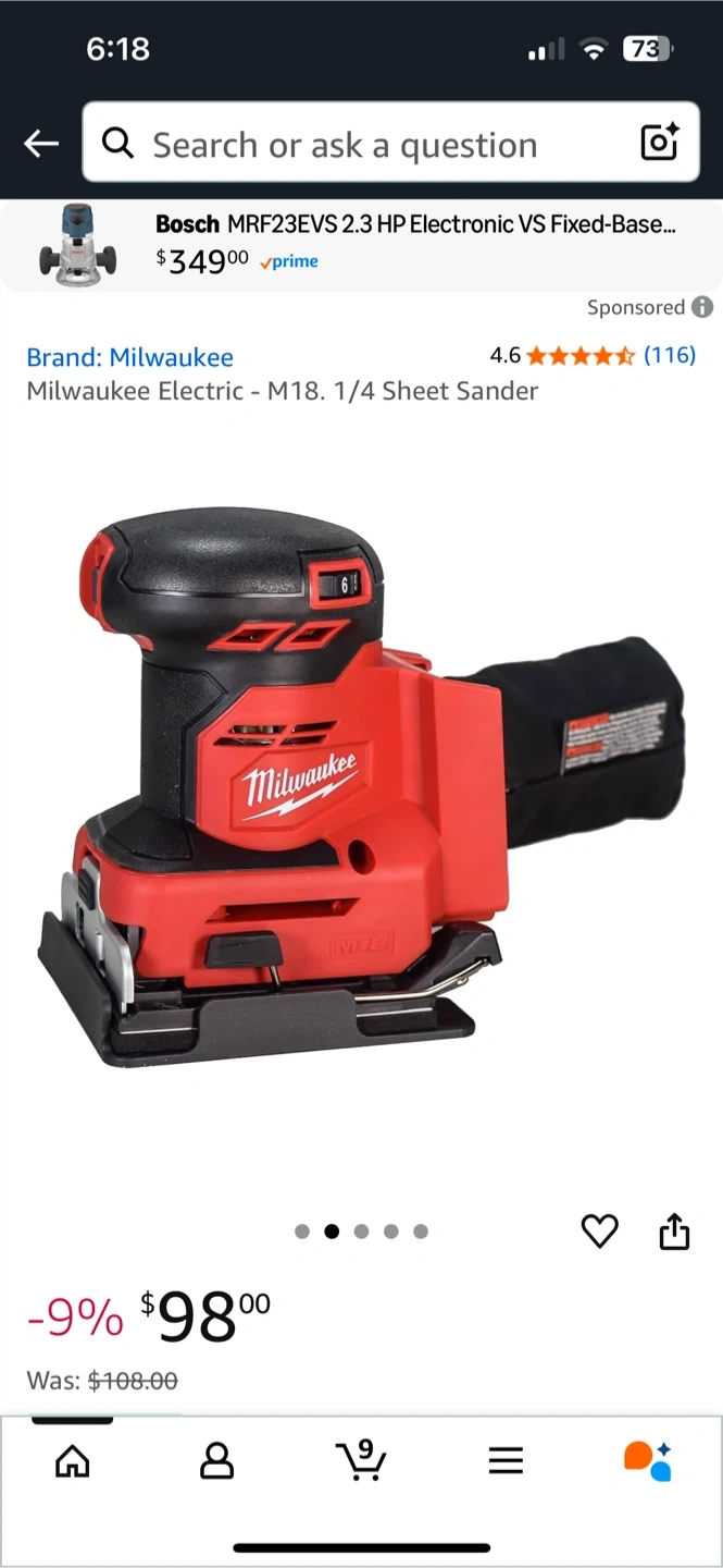 Selling a Milwaukee M18 1/4 Sheet Sander, model 2649-20. It's in excellent condition and comes with the original box. This sander fits all M18 batteries. A great tool to have for your projects!