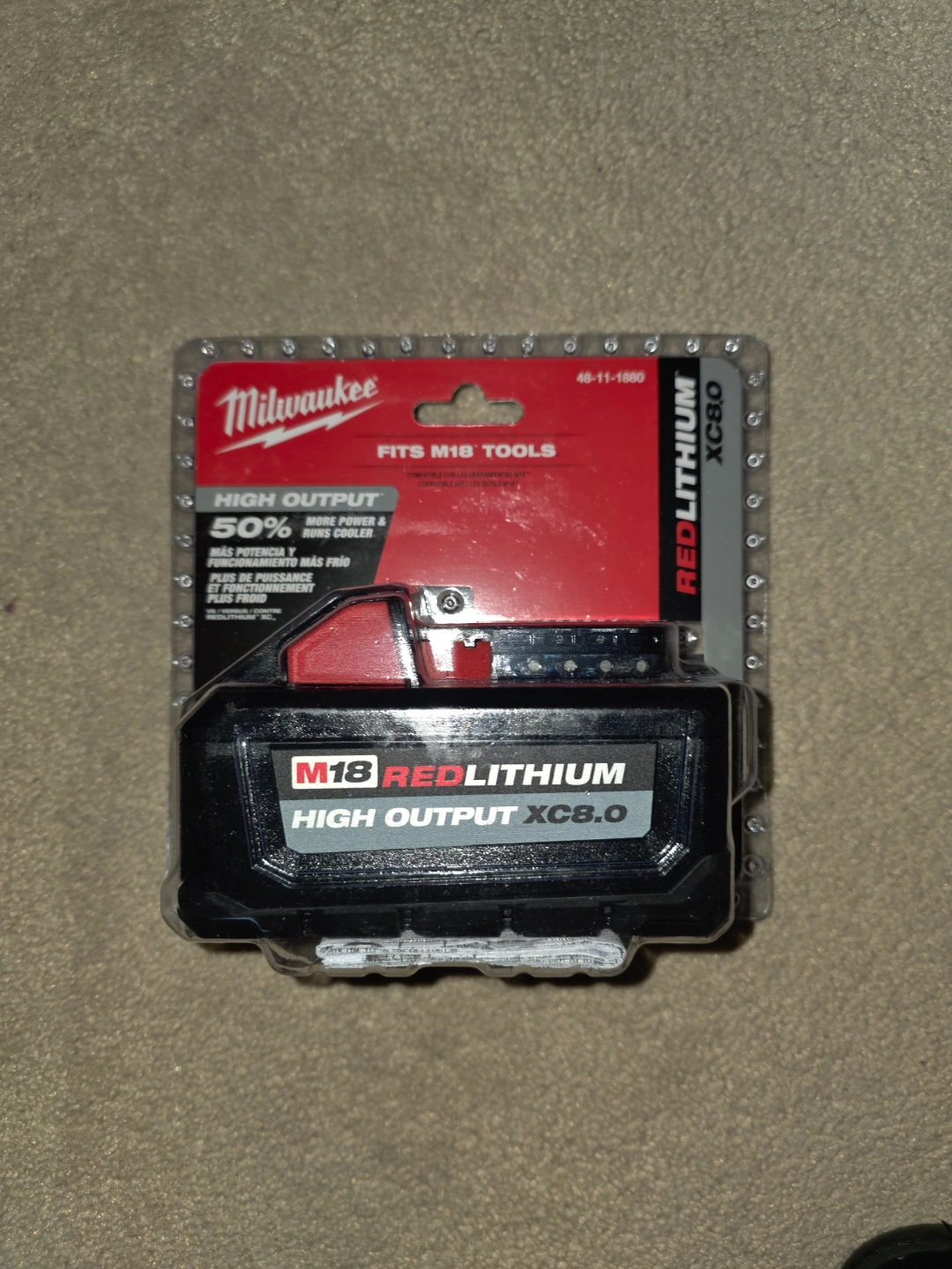 25Brand new Milwaukee M18 RedLithium XC8.0 High Output battery. Fits M18 tools. Model # 48-11-1880. 8.0 Ah capacity. High power and runs cooler.