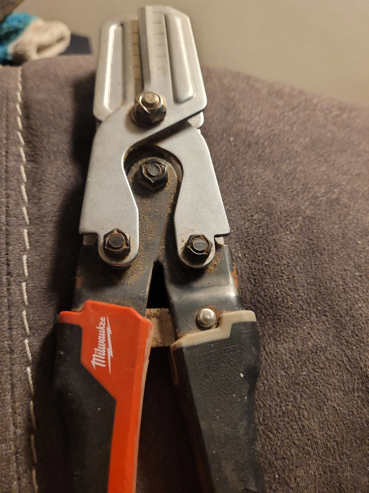 495Used Milwaukee metal roofing pliers. Durable construction. Comfortable grip. Shows some wear from use.5