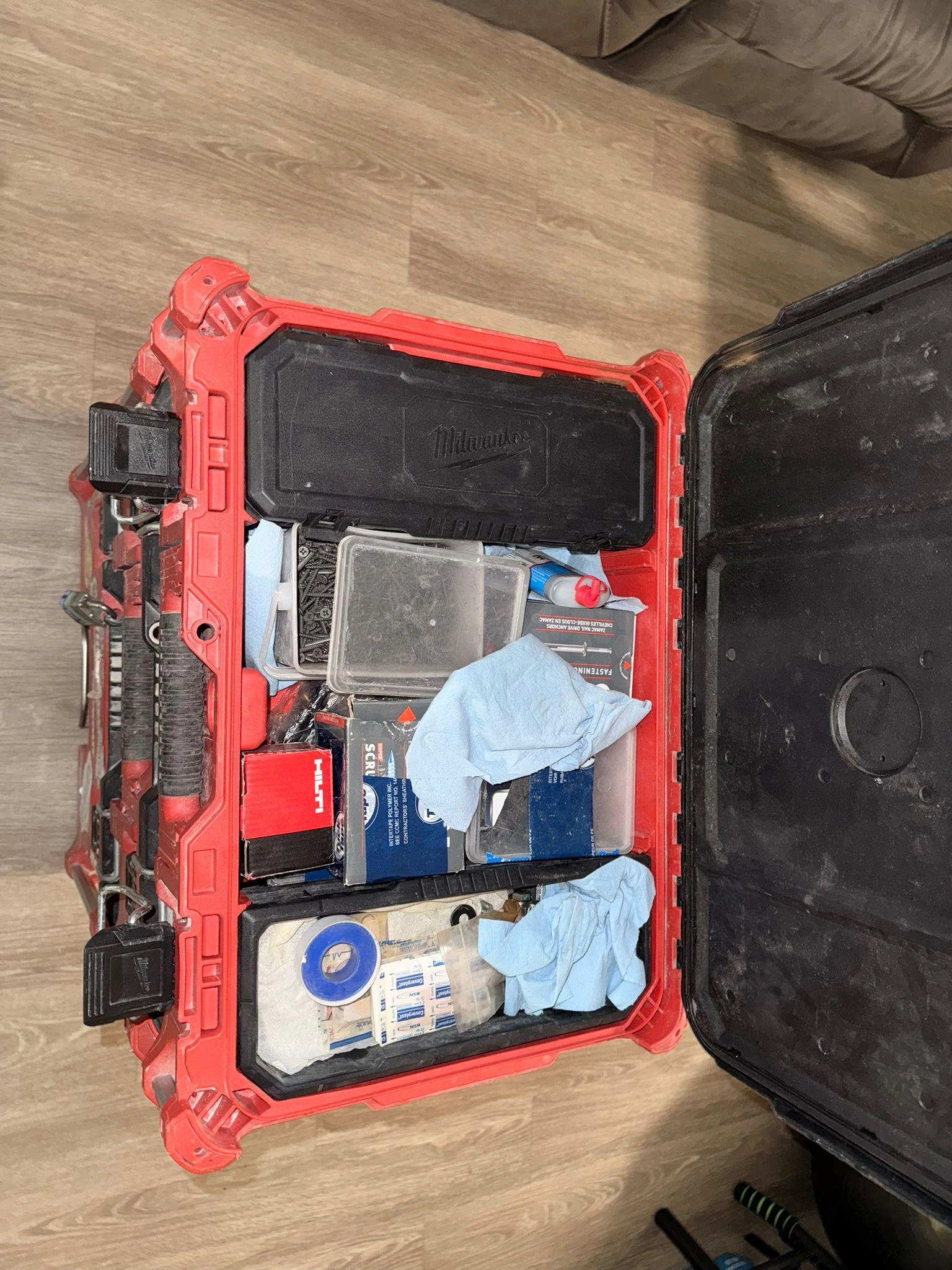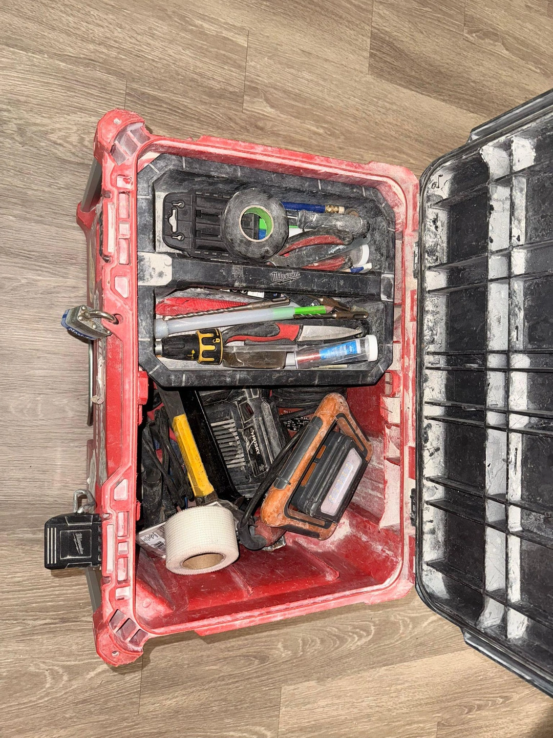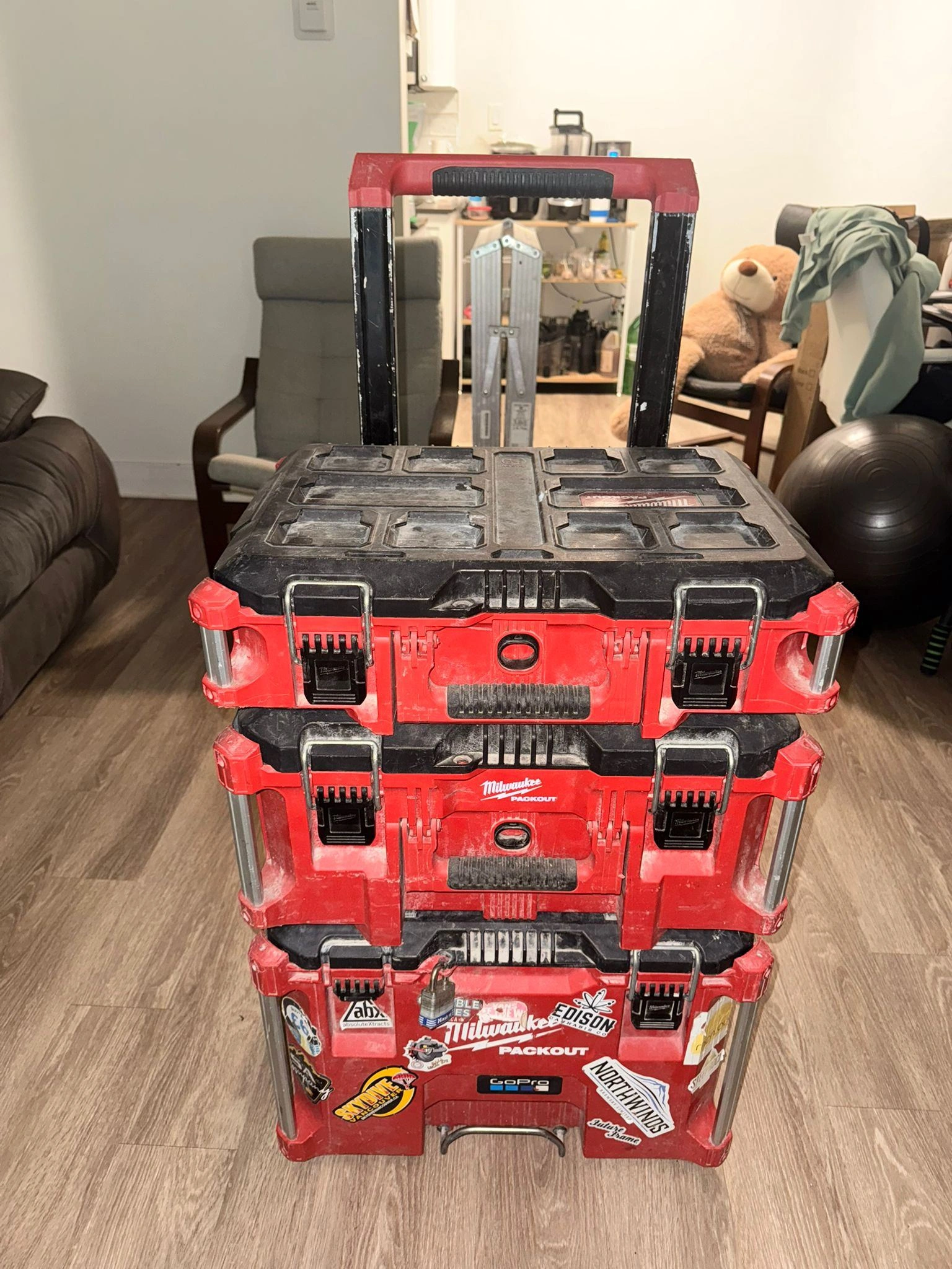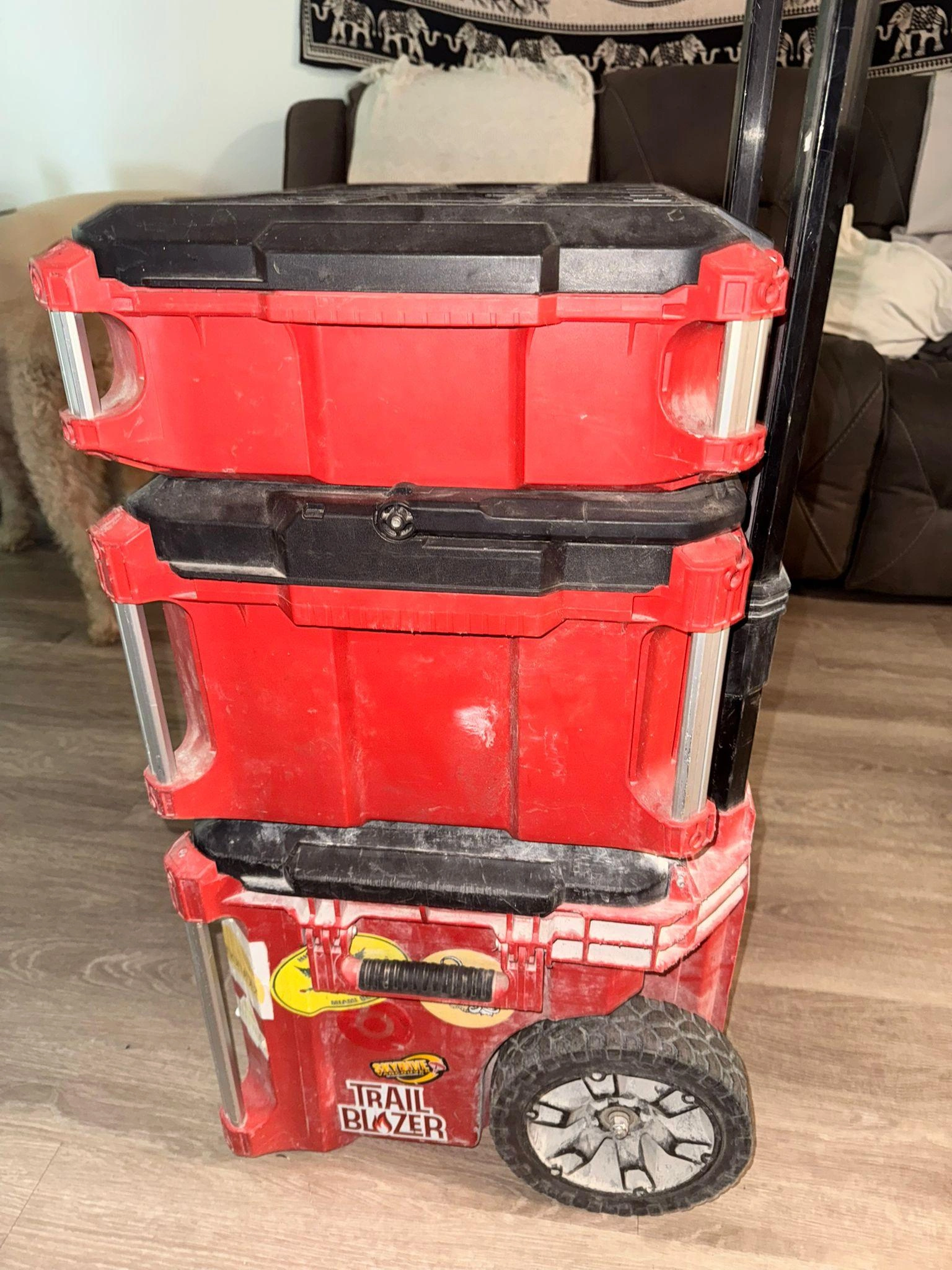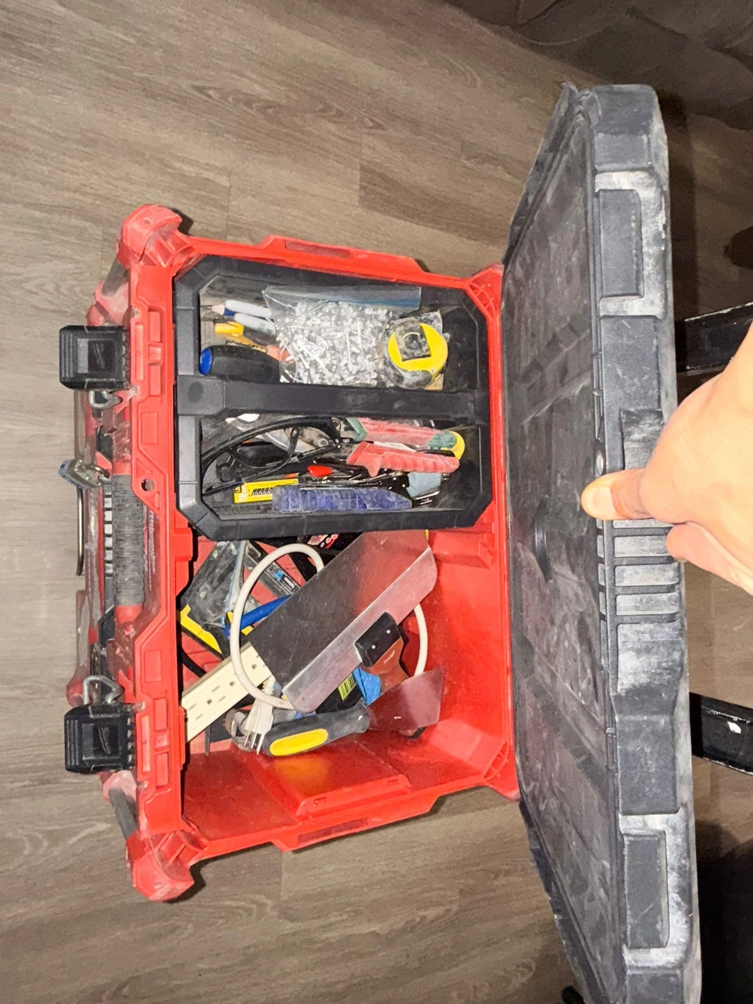 83Description Selling my Milwaukee PACKOUT 22-inch Rolling Tool Box, part of the legendary modular storage system. This is the large base unit with wheels and handle, perfect for contractors, DIYers, and tradespeople who want durable, stackable tool storage. Everything works great — wheels roll smoothly, handle extends perfectly, and latches are solid. Only flaw: the padlock latch is broken, so it can’t be locked with a padlock (see photo). Otherwise, it’s in very good shape with normal signs of use. Highlights Heavy-duty construction built for jobsite abuse Stackable modular design fits all PACKOUT components Industrial-grade extension handle and all-terrain wheels Spacious 22" interior for large tools, gear, or accessories Great deal if you don’t need the locking function Why it’s a Deal New ones go for over $438+ after tax — grab this one for a fraction of the price. Works perfectly for anyone who wants the PACKOUT system without paying full retail.