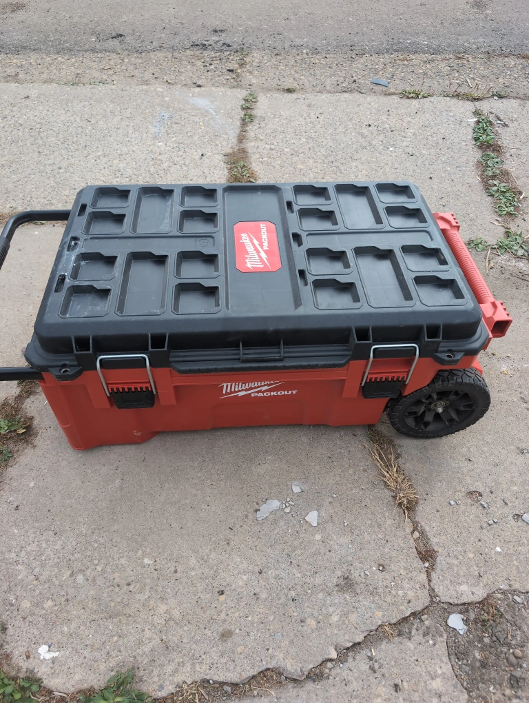 Selling a Milwaukee PACKOUT rolling tool box. It's in great shape and ready to help you organize your tools! The PACKOUT system is known for its durability and versatility, making it perfect for any job site or DIY project