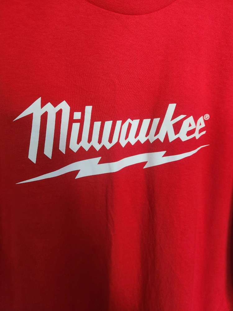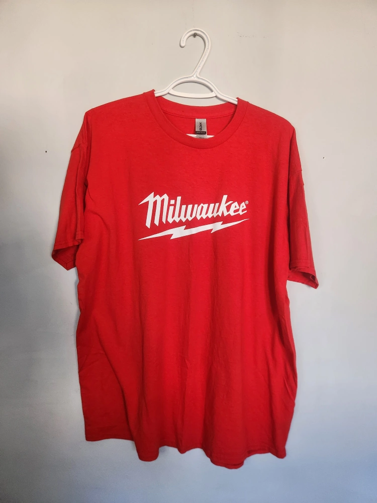132Selling a red Milwaukee branded t-shirt. It's a Gildan Heavy Cotton tee in size XL. Great for any Milwaukee tool fan!