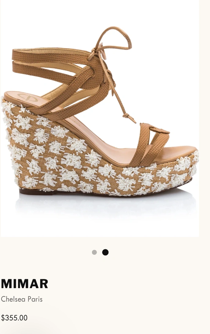 These are a pair of MIMAR Chelsea Paris wedge sandals. They feature a unique design with a tan upper and a woven wedge heel. These originally retailed for $355