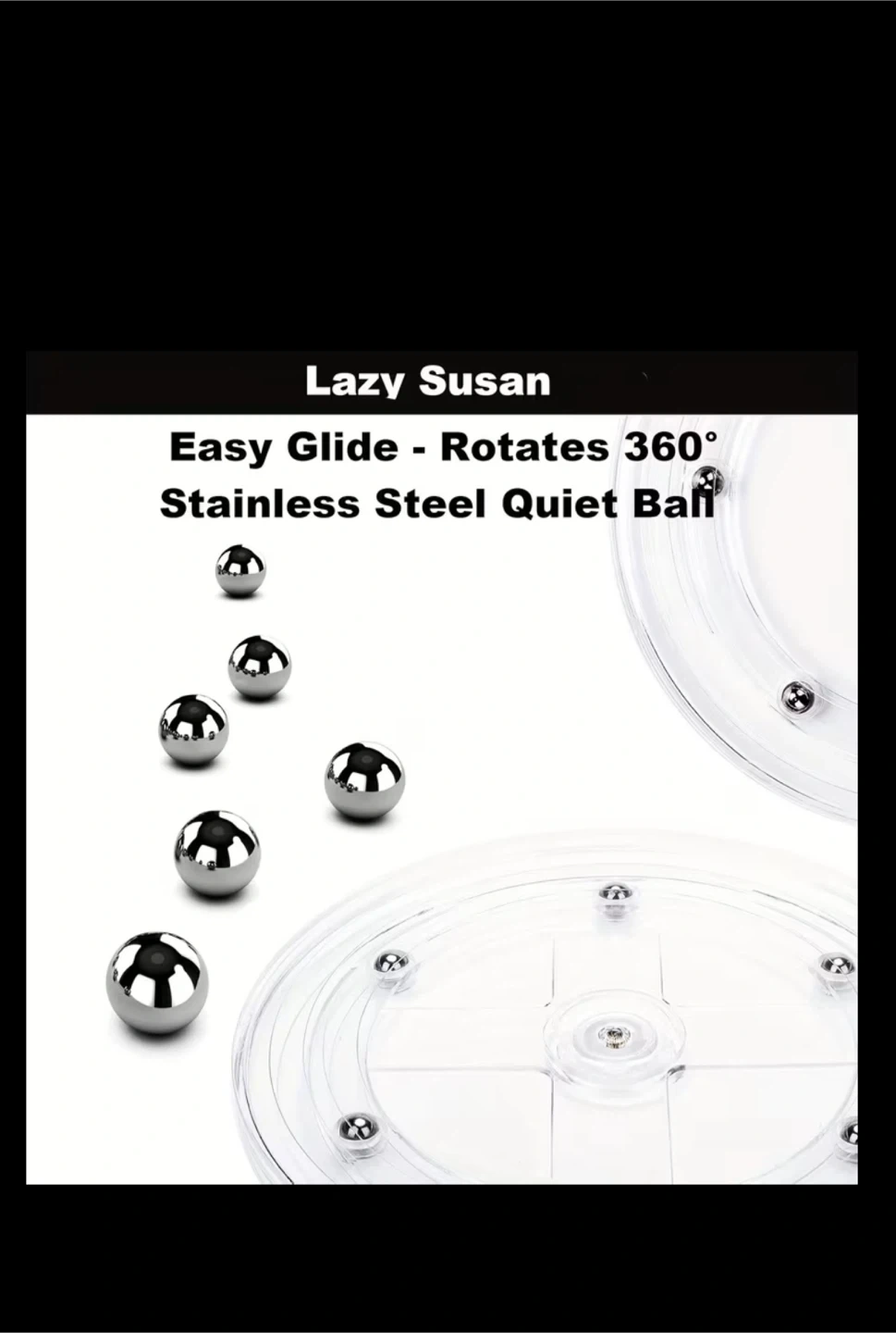 This is a 3-tier rotating organizer with a clear, transparent finish. It's designed for easy glide and rotates 360 degrees using a quiet ball bearing system. Dimensions are 27cm wide and 42.7cm tall.