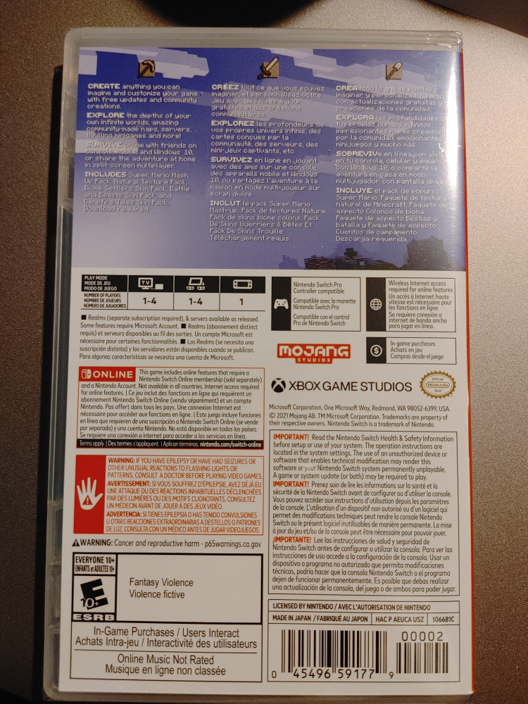 1000+🥕MINECRAFT GAME FOR NINTENDO SWITCH. 🥕BRAND NEW AND FACTORY SEALED 🥕LOCATED IN THE YONGE AND STEELES AREA FOR PICKUP ONLY. THANKS FOR LOOKING.☺️☺️☺️