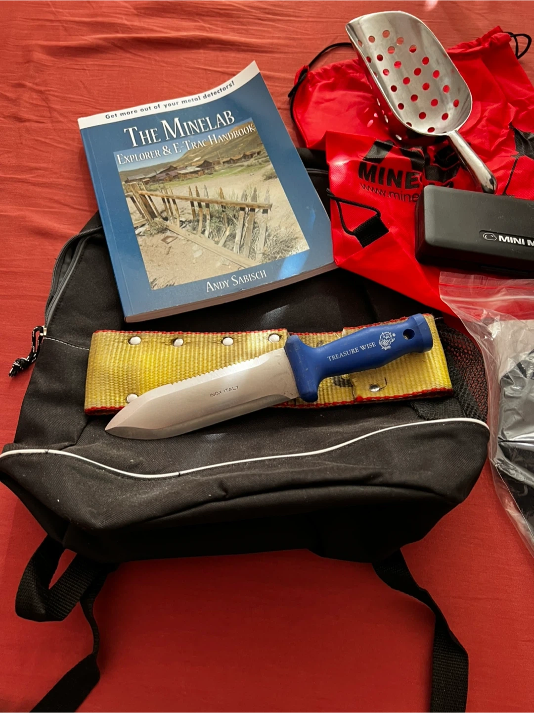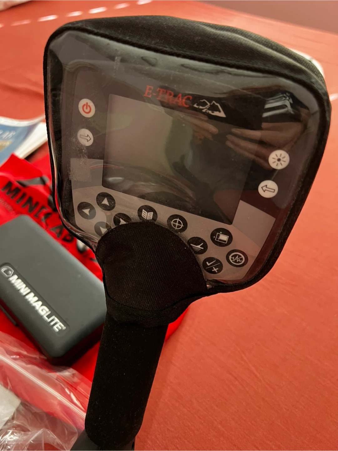 Selling a Minelab E-Trac metal detector. It comes with a variety of accessories to get you started on your treasure hunting adventures. Included are the Slimpack battery, AC/DC adaptor, a scoop, and a carrying bag. Also comes with a handbook to help you get the most out of your metal detector