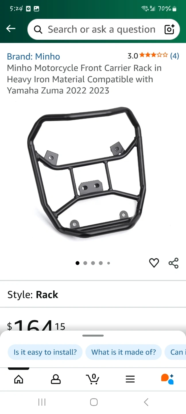 Selling a Minho motorcycle front carrier rack compatible with Yamaha Zuma 2022-2023 models. It's made of heavy iron material Location: Taunton and Townline Check out my other listings