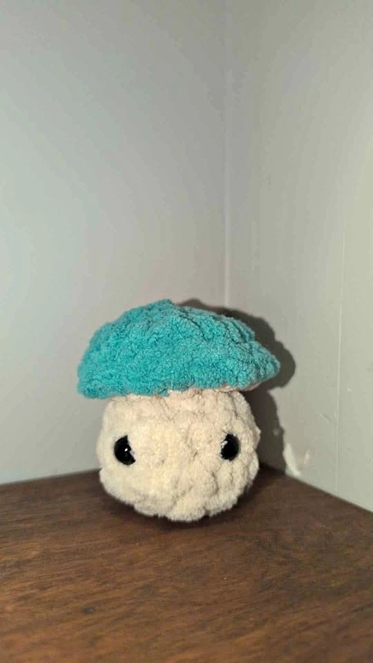 This tiny crocheted mushroom is the perfect pocket-sized companion! With its fluffy cream stem, shiny black eyes, and bright teal cap, it’s bursting with charm. Soft, squishy, and handmade with care, this mushroom makes an adorable keychain, bag charm, or desk buddy. Whether you clip it to your keys, backpack, or purse, it’s sure to bring a touch of cozy whimsy wherever you go. Check out my other listings for more crochets. 8$ without keychain, 9$ with keychain