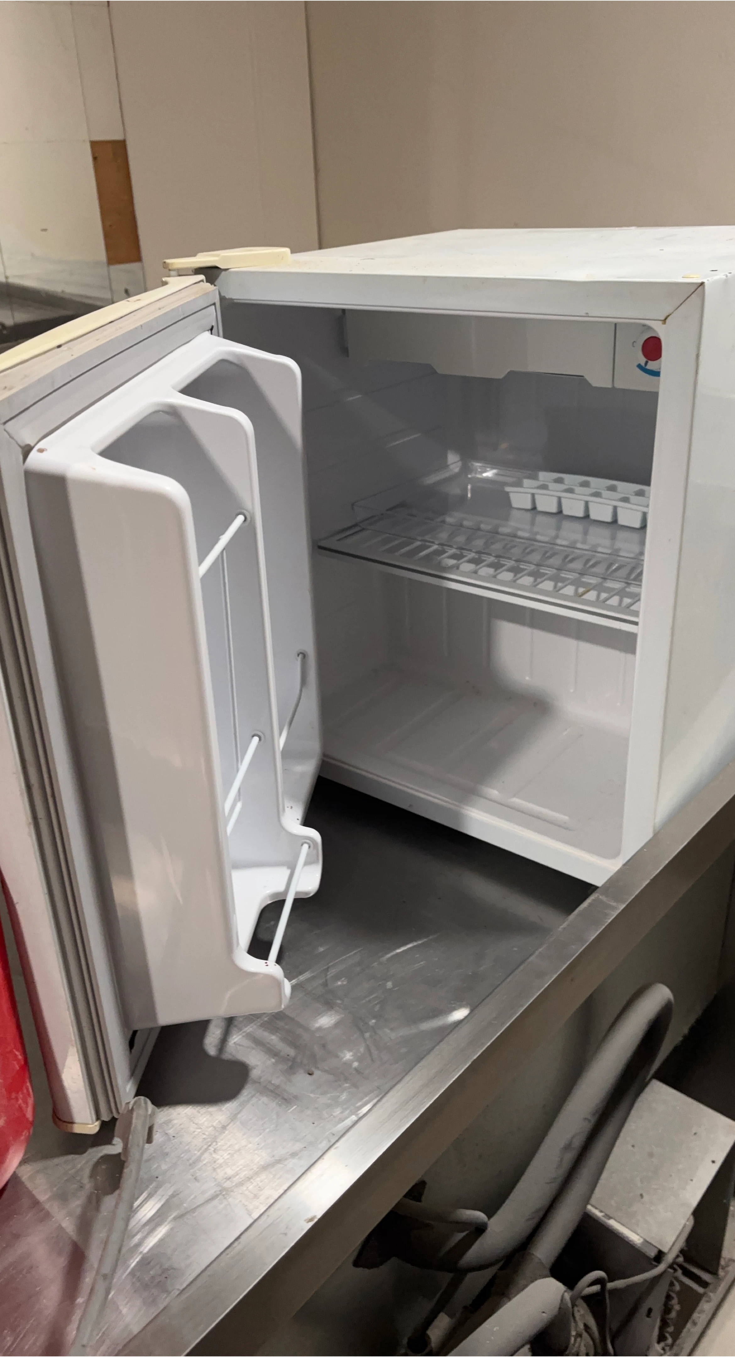 10Selling a mini fridge, perfect for a small space. It's white and has a compact design. Great for a dorm room or office!