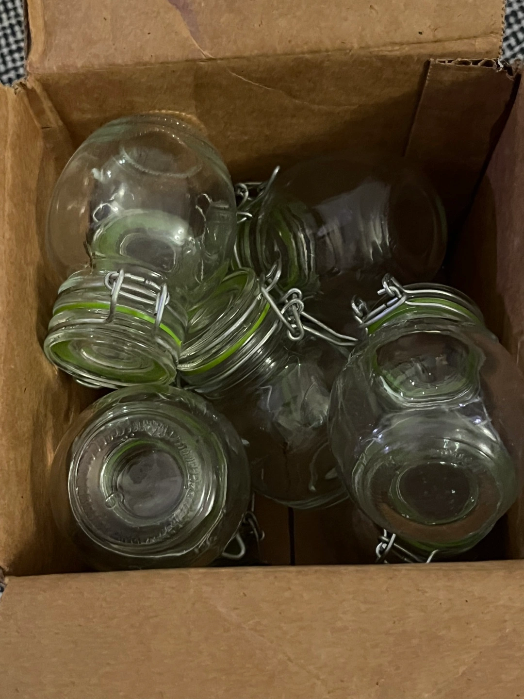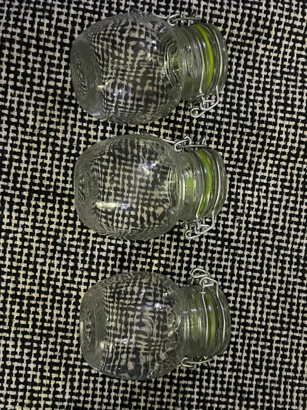 659 mini glass jars, perfect for storing spices or other small objects. Price is for all 9. Pickup near St Clair and Bathurst