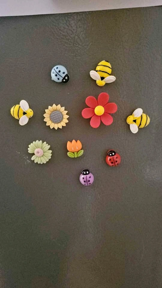 Mini garden theme magnets. Adorable little lady bugs, bees and flowers.