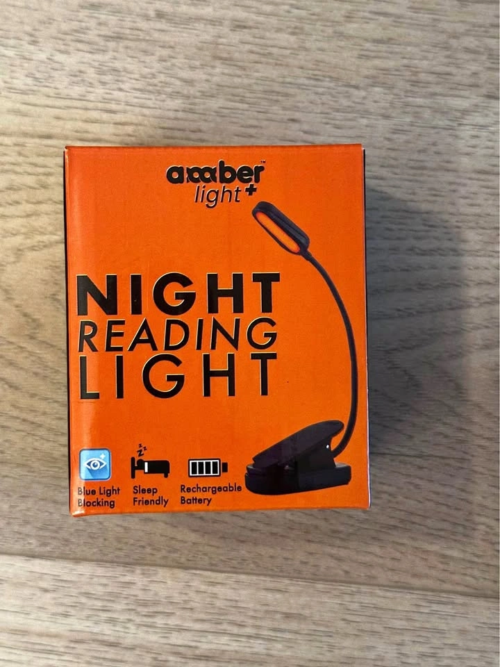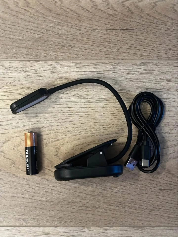 Brand new, mini reading light, perfect to use before going to bed. The battery in the picture is only used for sizing, no battery needed to operate.