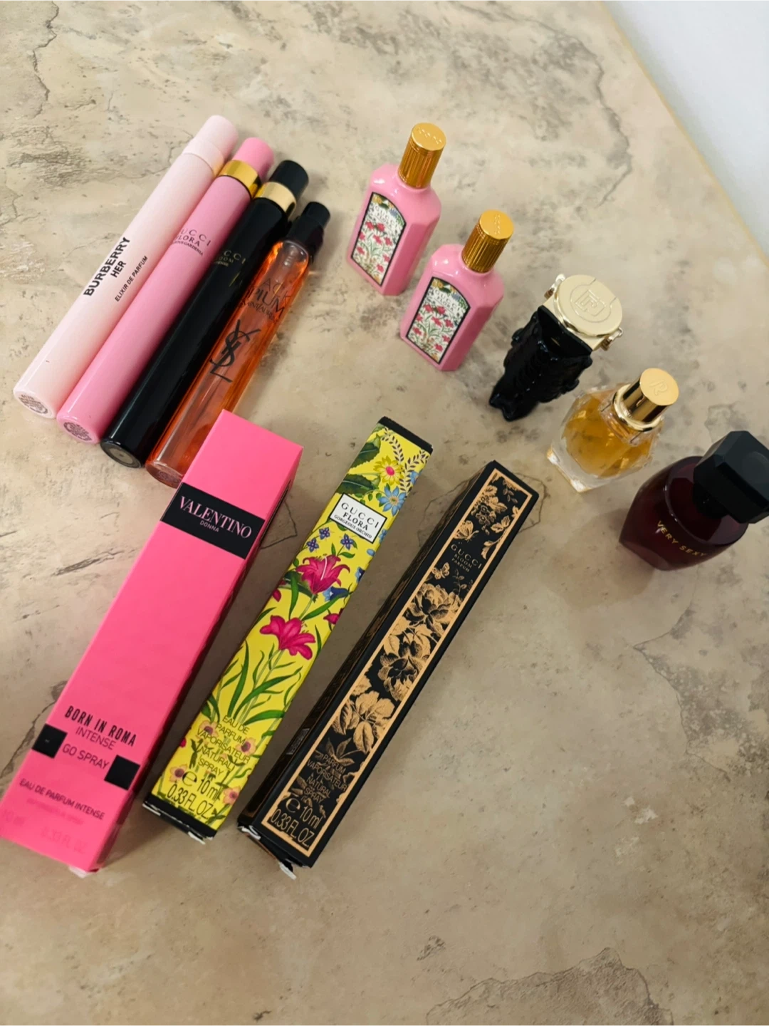 17Selling a set of mini perfumes! Includes: - Gucci Flora - Burberry Her - Yves Saint Laurent - Valentino Born in Roma Intense - Very Sexy