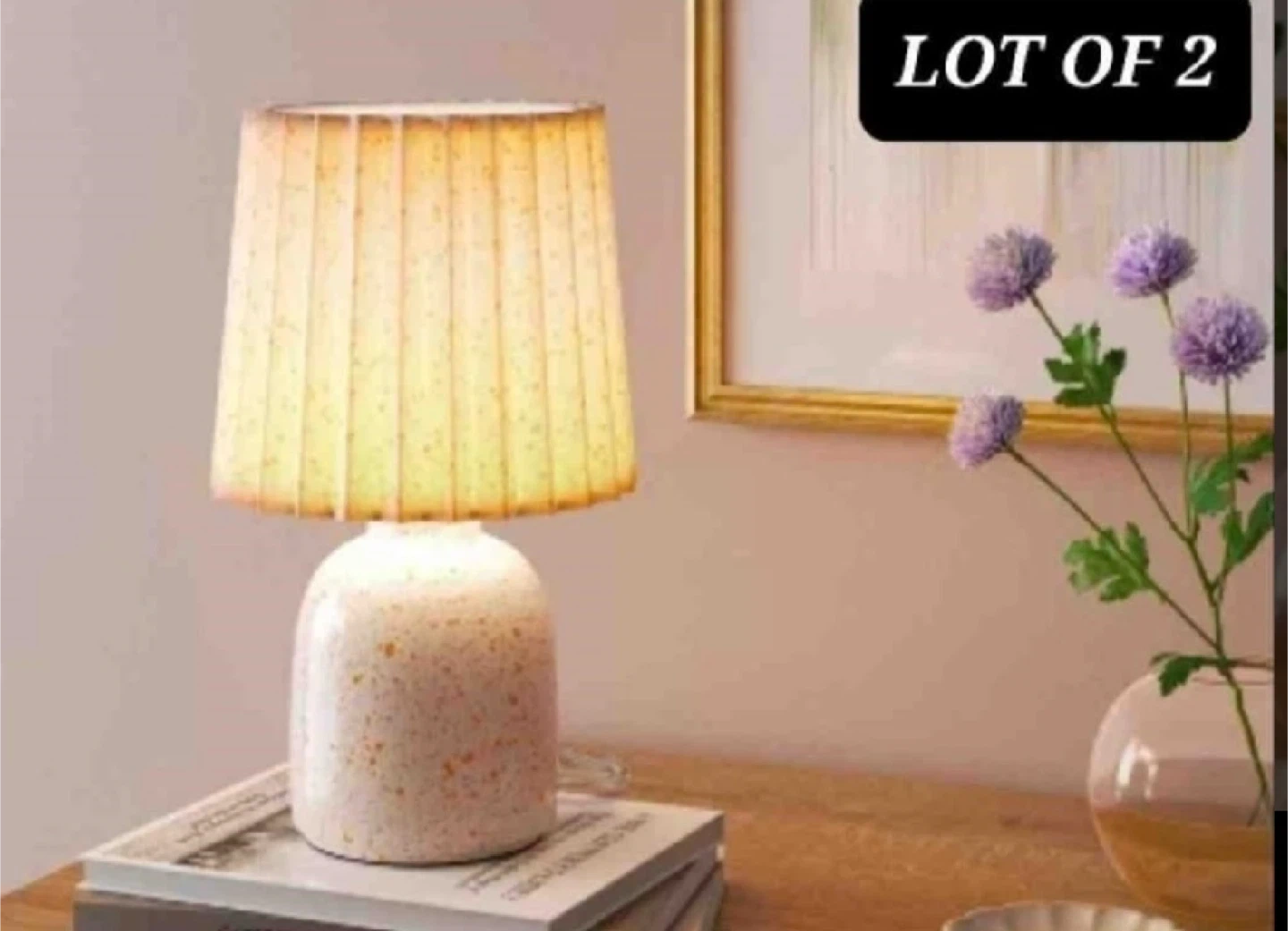 100Illuminate your space with this brand new set of two mini printed ceramic table lamps, still sealed in their original box, adding a touch of elegance and modern design to any room. Perfect for bedside tables, desks, or living areas, these lamps provide a warm and inviting glow.