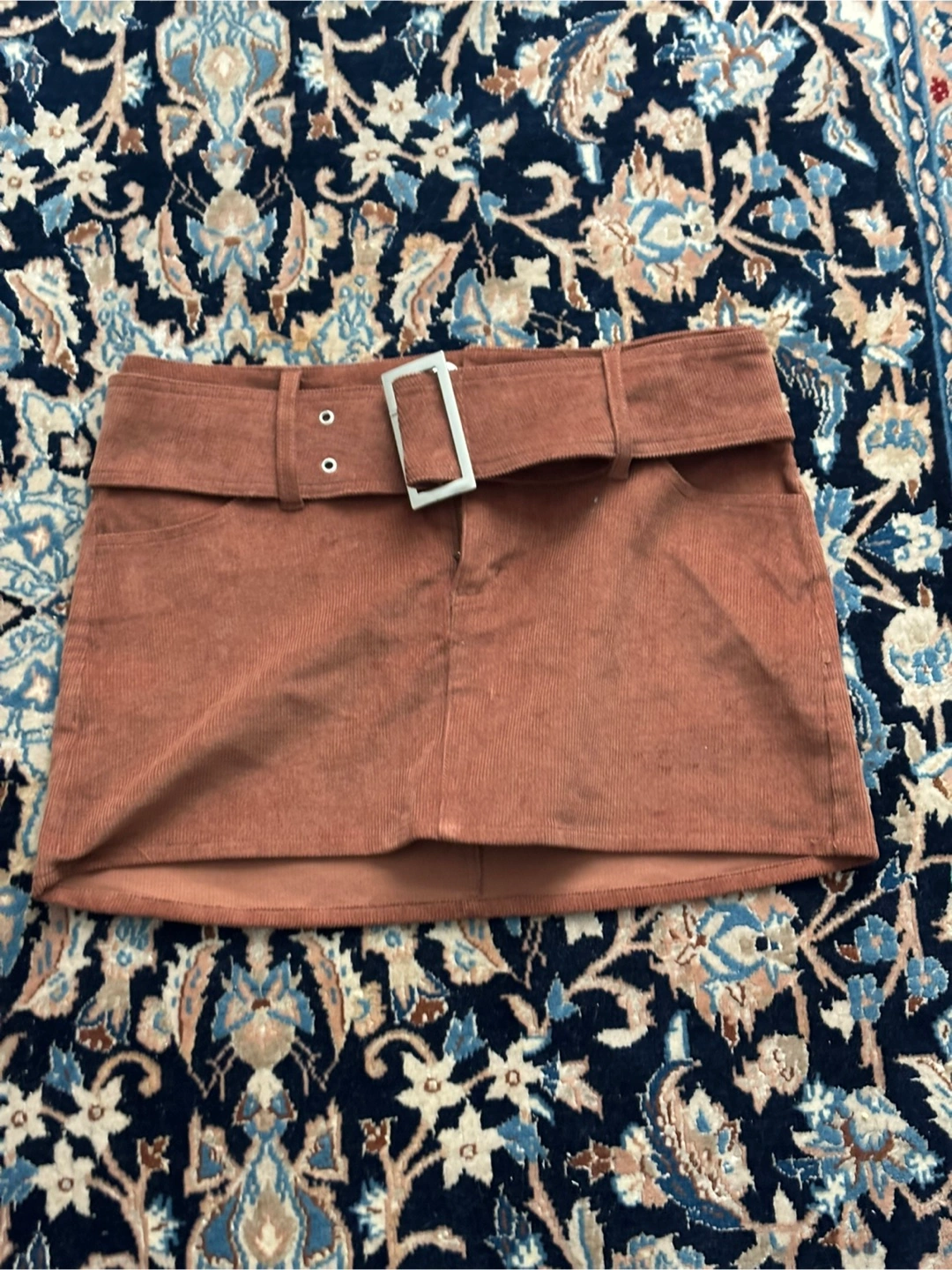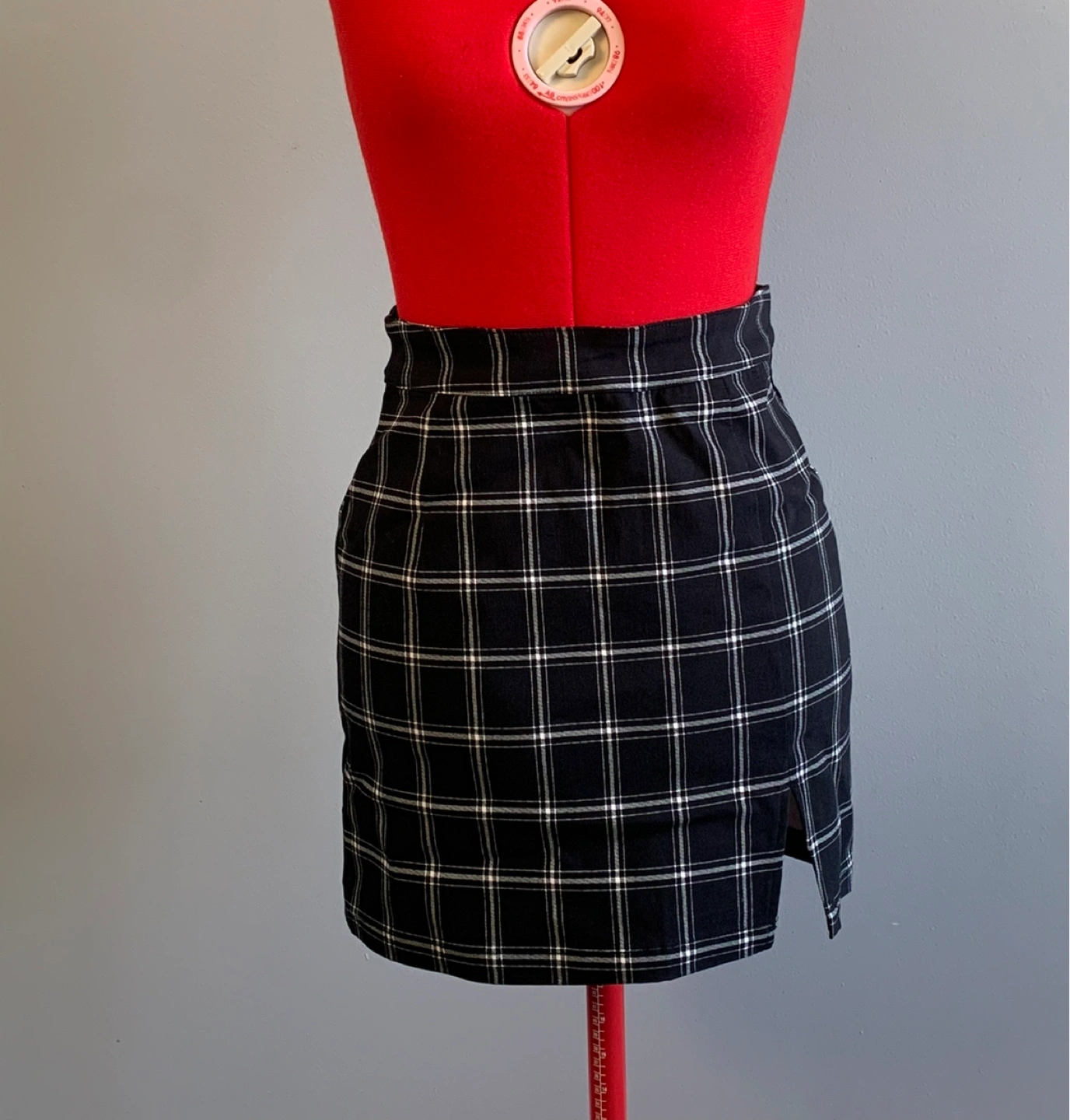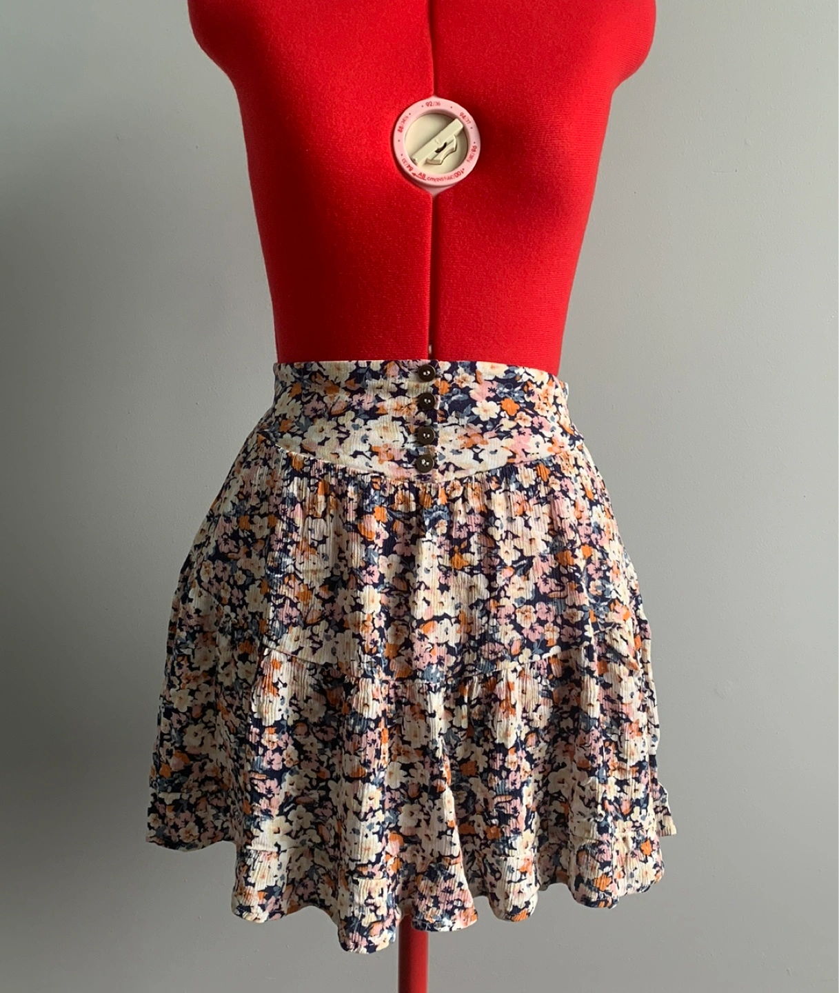 1st: white a-line skirt with blue and green ditsy flowers (H&M) 2nd: flowy spring mix floral skirt (minipink) 3rd: black & white plaid skirt with thigh slit (Garage) 4th: brown corduroy mini skirt with belt (Garage)