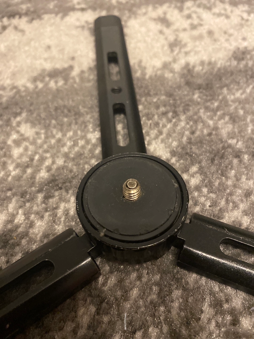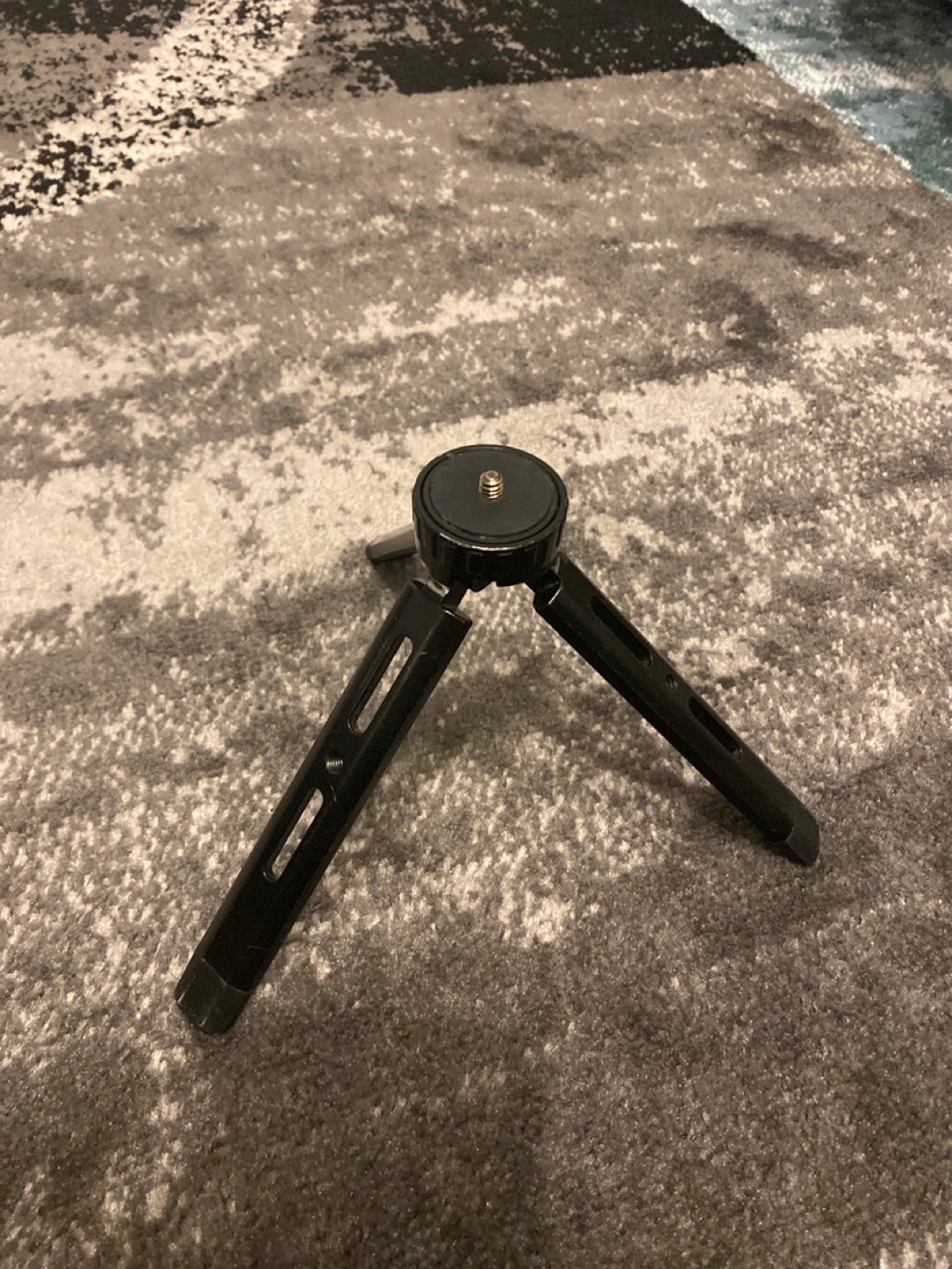 16Small, portable tripod. Black colour. Suitable for lightweight cameras or smartphones. Compact design, easy to store. Holds a few kg 1/4 screw size. 10$ firm.