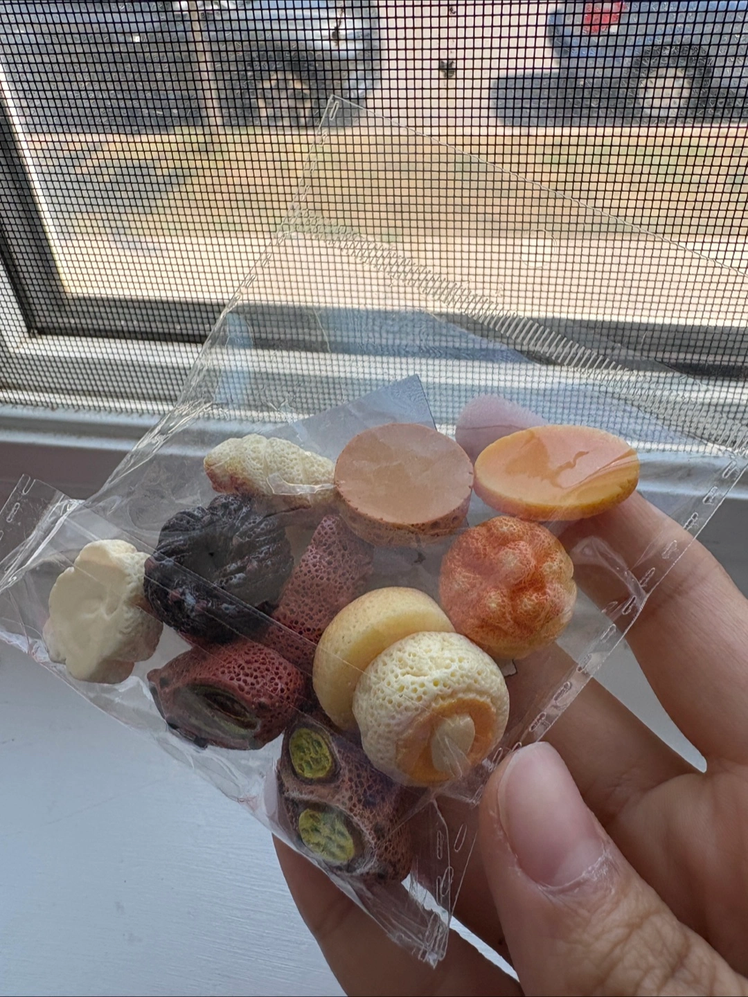 I'm selling a bag of miniature food pieces. They come with magnets to stick on fridge, lockers or to be used just as figures. They are small so be careful around kids under 3. Pick up is best thanksss