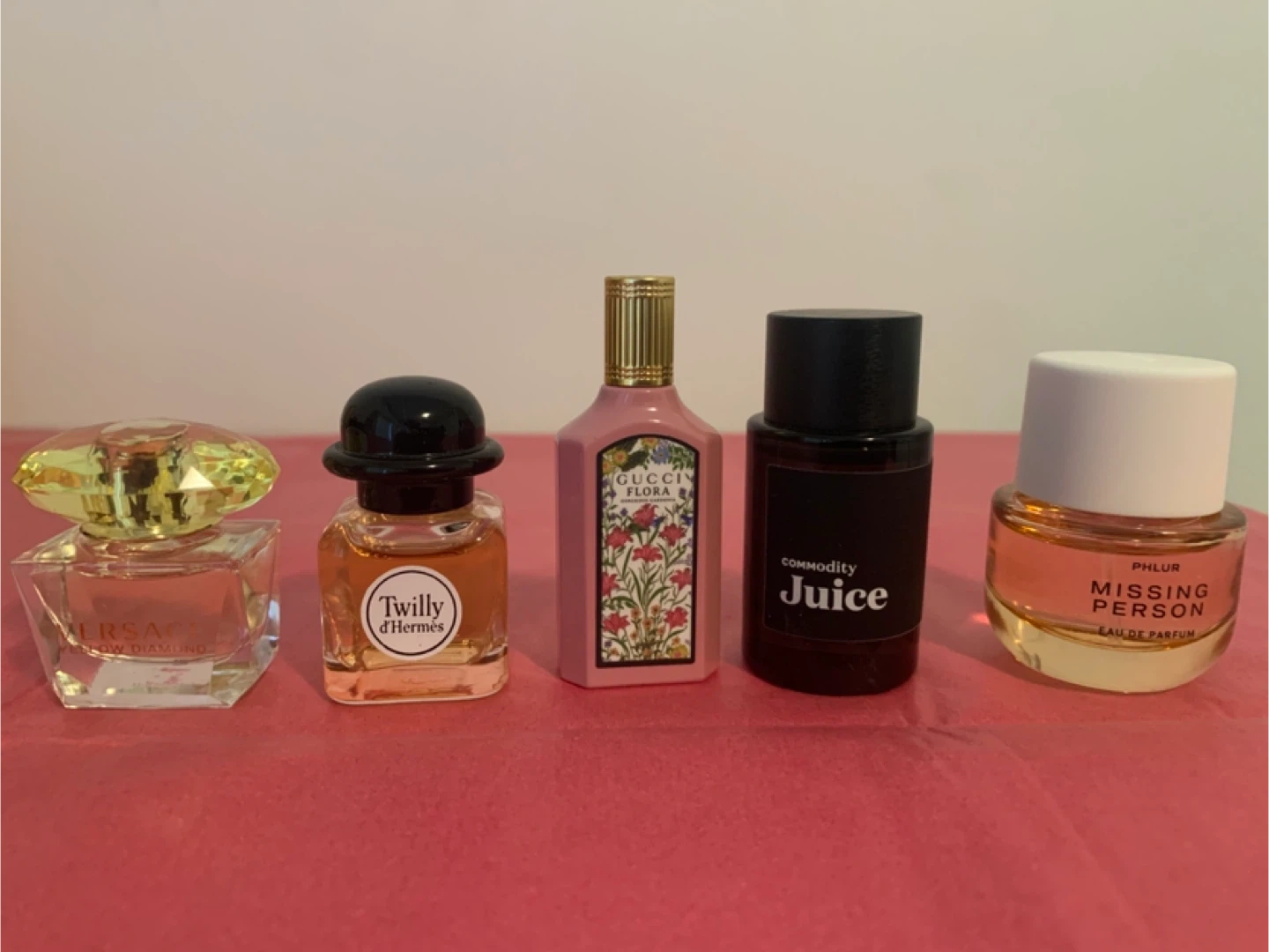 Phlur: Missing Person 7mL (Sold) Commodity: Juice 7mL Gucci: Flora 5mL Twilly By Hermes 7mL Versace: Yellow Diamond 5mL Take all for $15 or $5 each Pickup 30 Okra Tomar Crescent