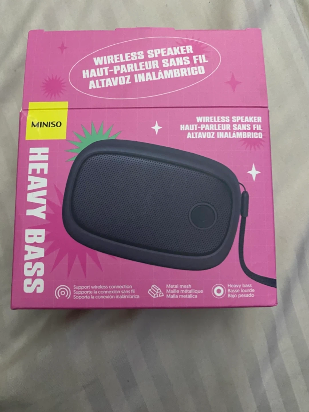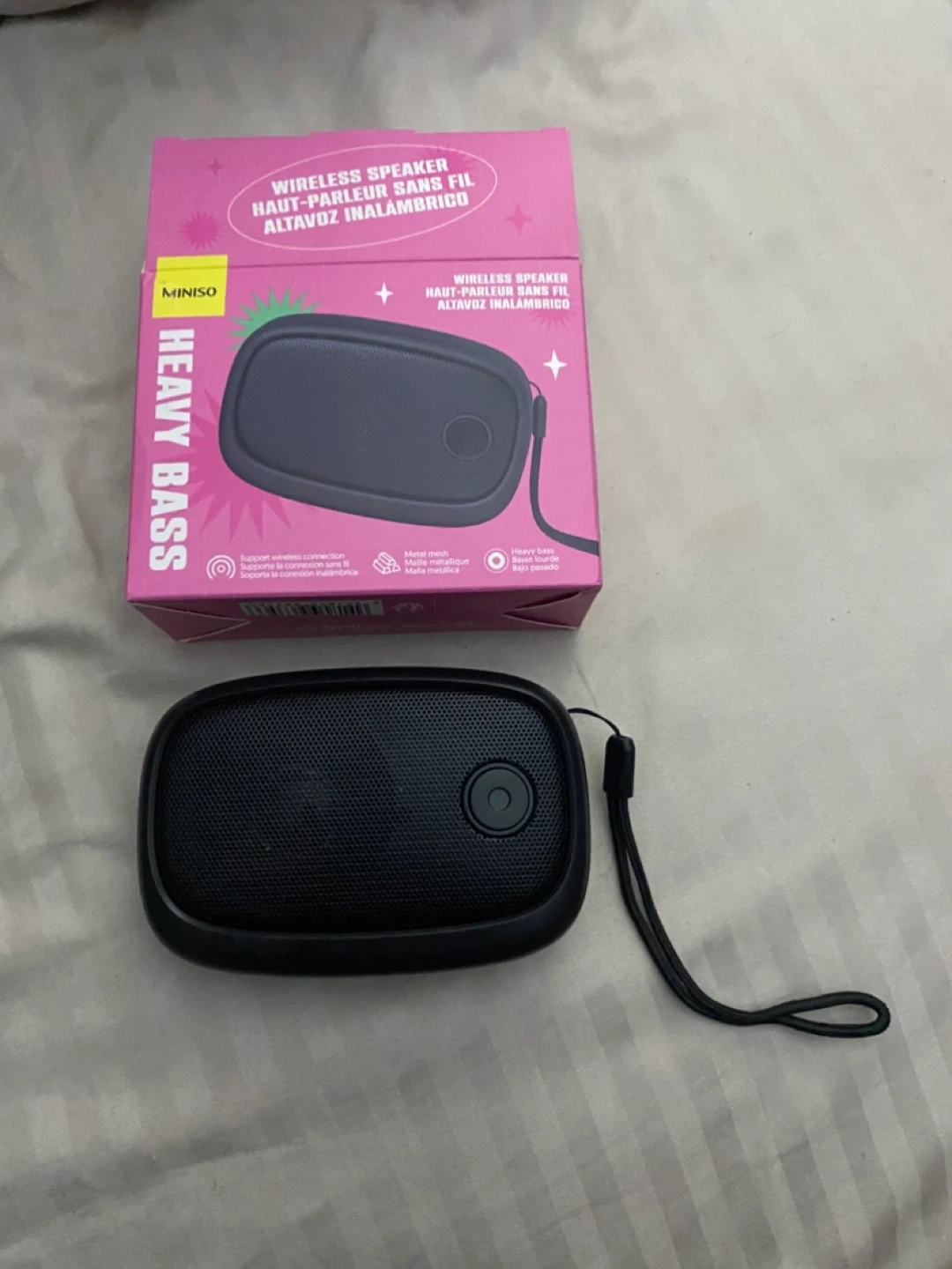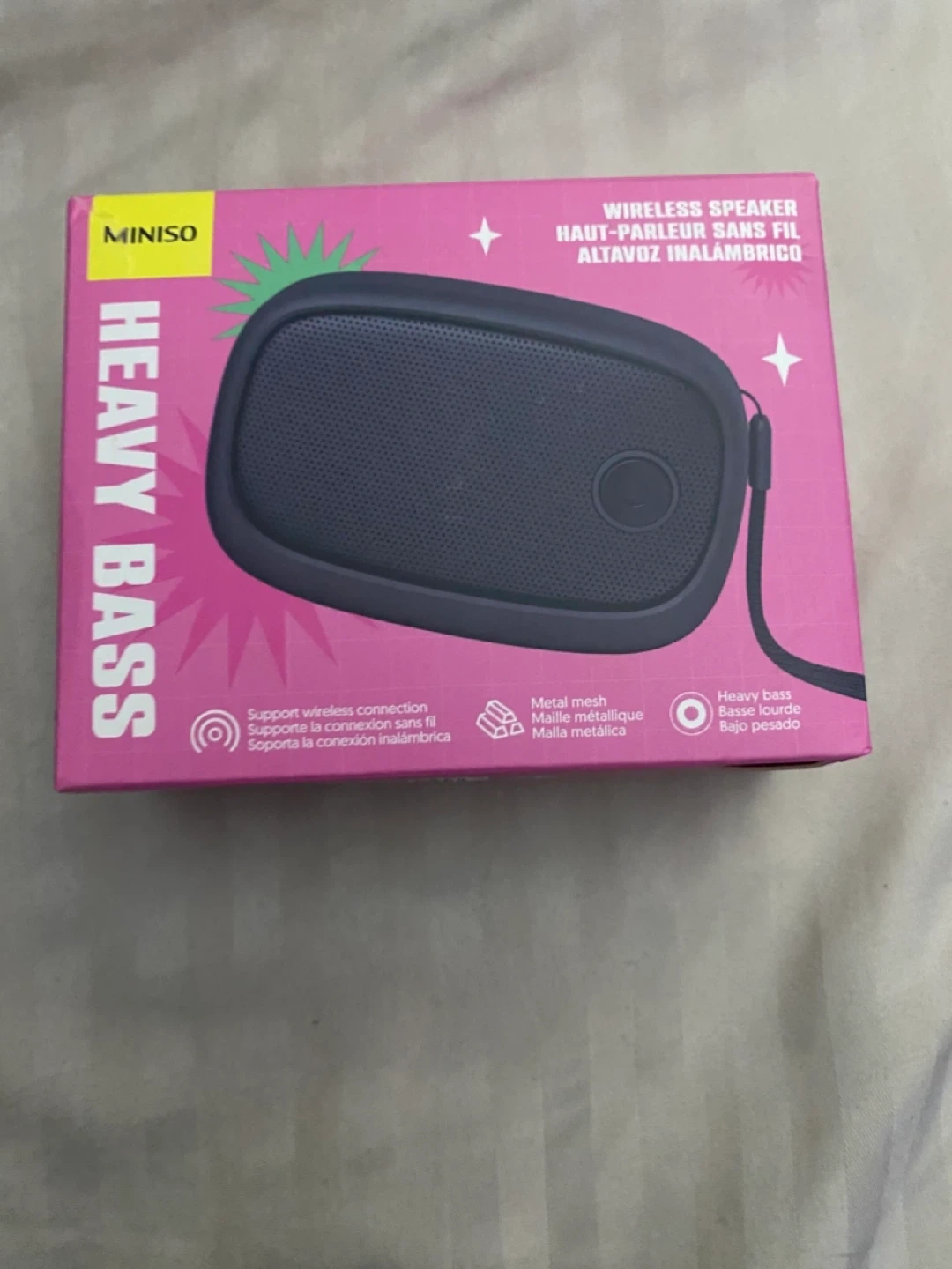 Selling a pretty new MINISO Heavy Bass wireless speaker! It supports wireless connection and has a metal mesh design. Great for listening to your favourite tunes on the go