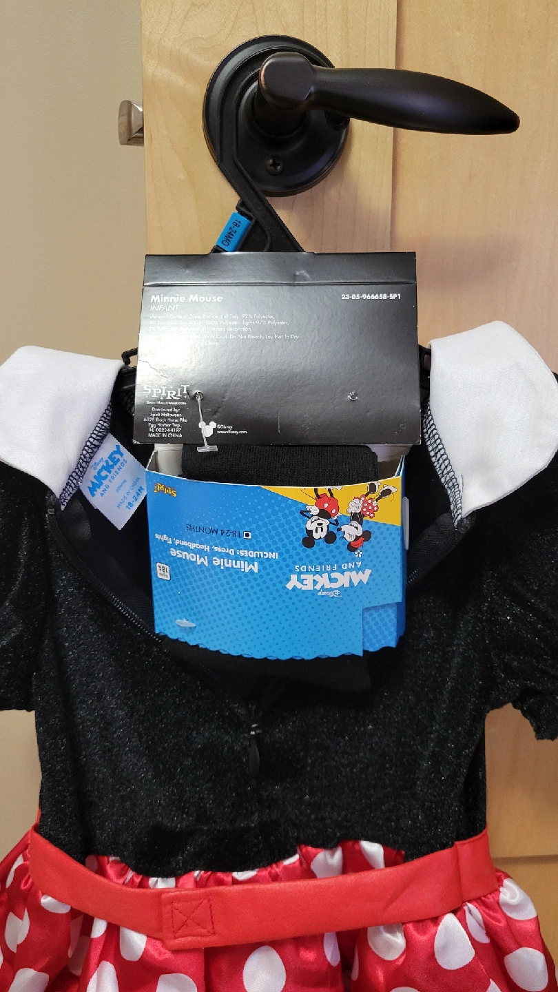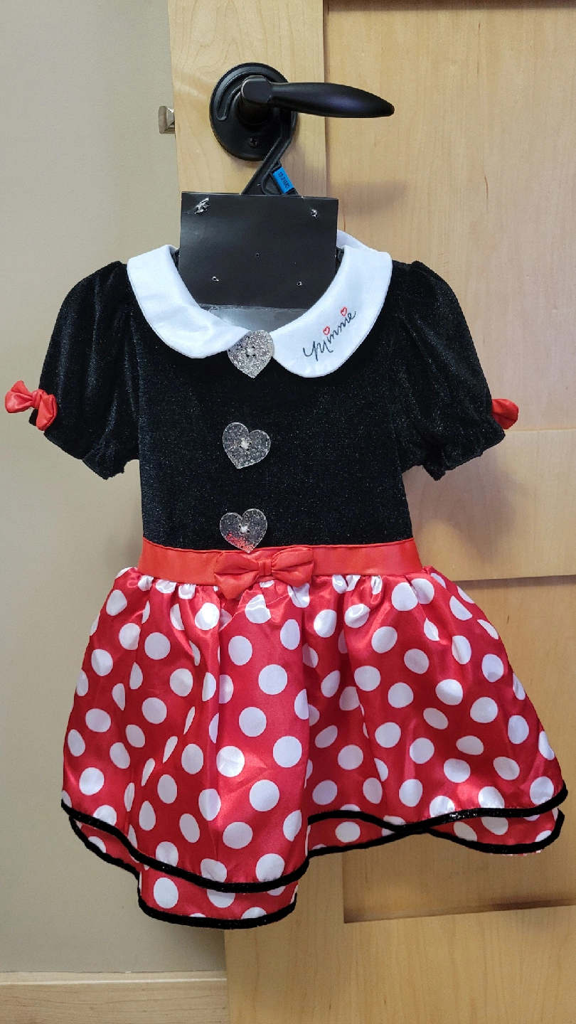 10Super cute Minnie Mouse dress! It comes with a matching headband and socks. The size is for babies 12-24 months. Perfect for your little one! Used one time. Tights were never used.