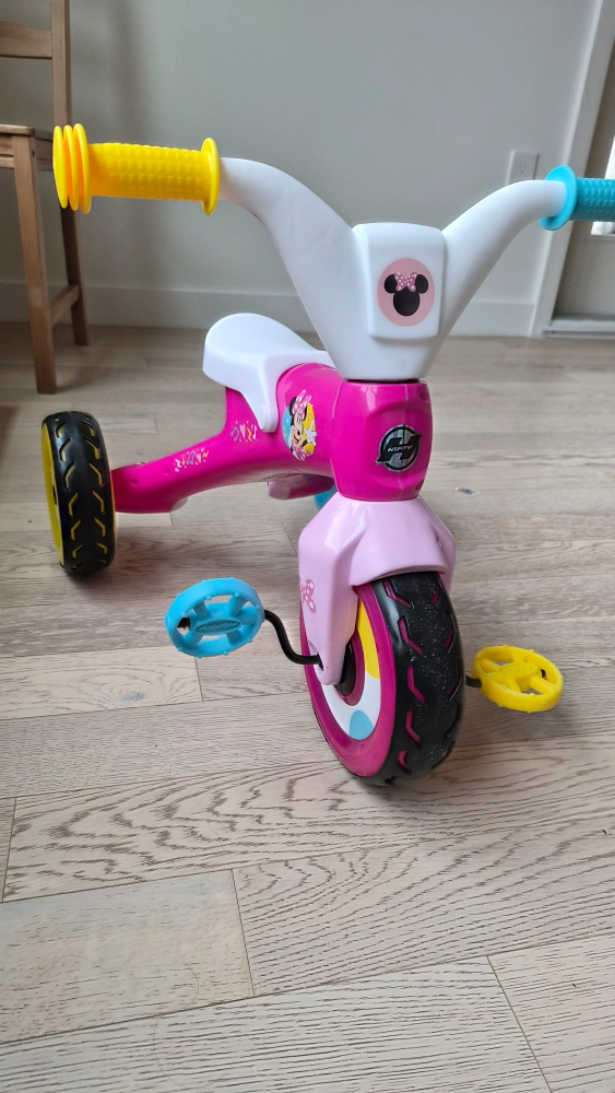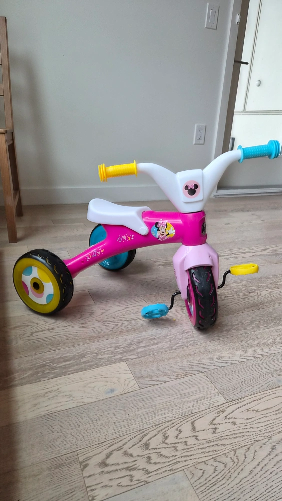Here's a cute pink tricycle featuring Minnie Mouse! It's perfect for little ones learning to ride. The tricycle is in good condition and ready for a new home. Great for indoor or outdoor fun for 1 -3 year old only good condition... newly purchased