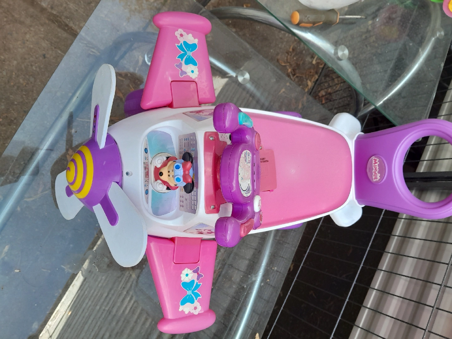 Selling a cute Minnie Mouse airplane ride-on toy! It's in great condition and ready for a new home. Perfect for little ones who love Minnie and flying adventures