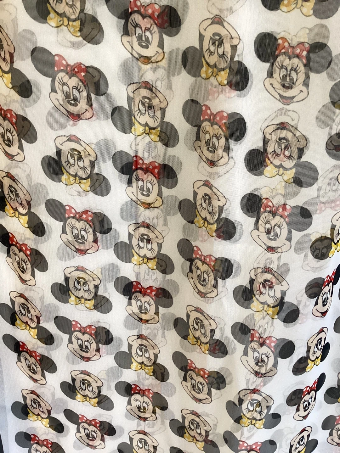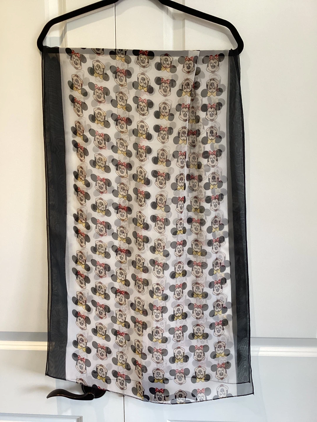 207Minnie Mouse Scarf, tag missing but I would say it is 100% Polyester, approximate size 59” X 20”, $15 or best offer.