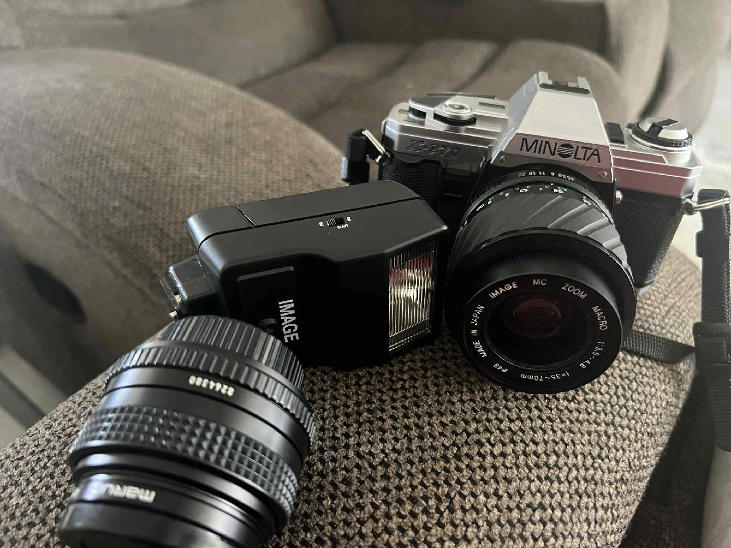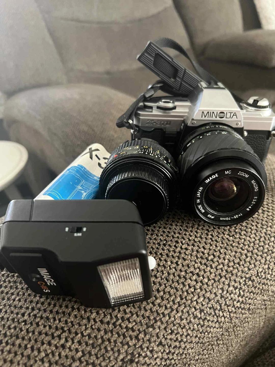 243Selling a Minolta X-370 film camera! It comes with an Image C-18S flash and a Minolta MC Zoom Macro 1:3.5 f=35-70mm lens. Great for anyone looking to get into film photography or add to their collection PO pick up or deliver