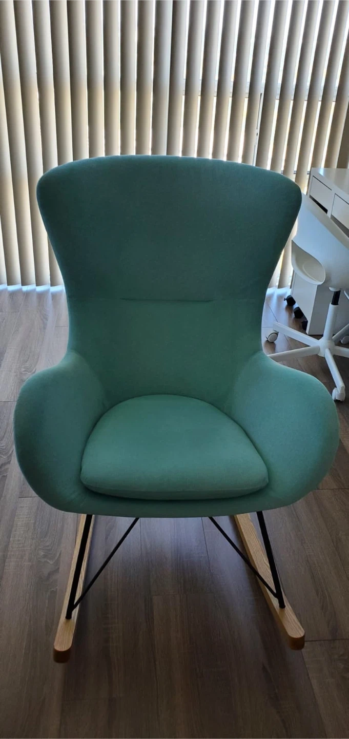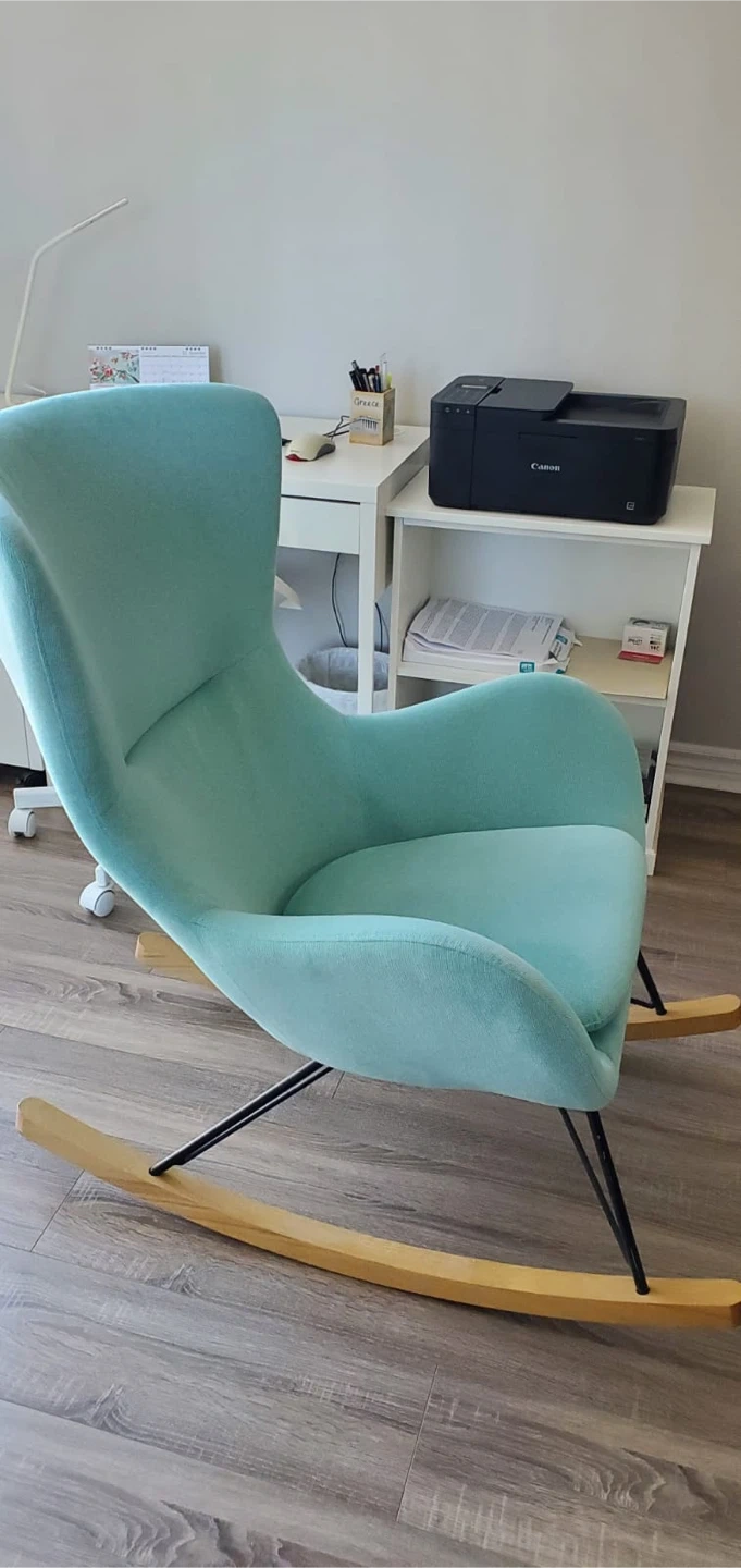 60Looking to sell this lovely mint green rocking chair! It's in great condition and would be a cozy addition to any room in your home. The chair features a comfortable design with a high back for added support. The wooden rockers and black metal frame provide a stylish and sturdy base. It's perfect for relaxing with a book or rocking a baby to sleep. I'm selling this on behalf of my father who lives in Mississauga. The item will be available for pickup in Mississauga.