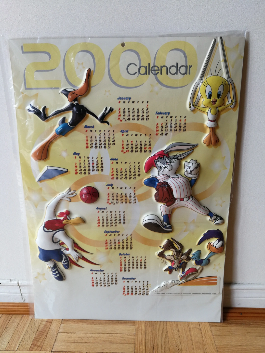 65Located in OSHAWA ... Ritson Road North and Taunton Road area MINT CONDITION , LIMITED EDITION Year 2000 Y2K Warner Brothers Looney Tunes Calendar Featuring Bugs Bunny, Daffy Duck, Tweety, Foghorn Leghorn, Road Runner and Wile E. Coyote This calendar is over 25 years old! On December 31st 1999 the entire world was afraid of what was going to happen once the clock went to 00:00:00 on January 1st 2000. What memories!