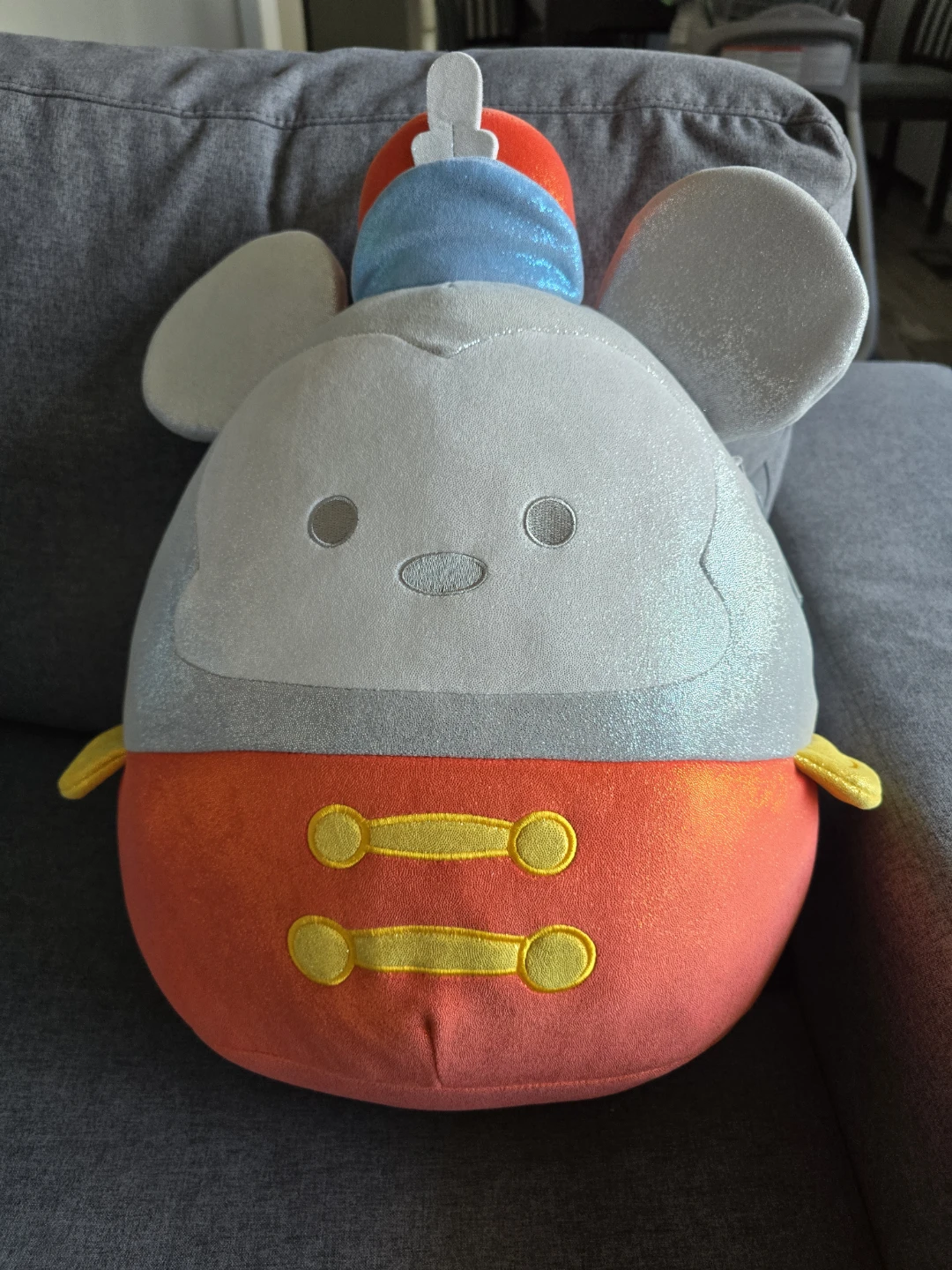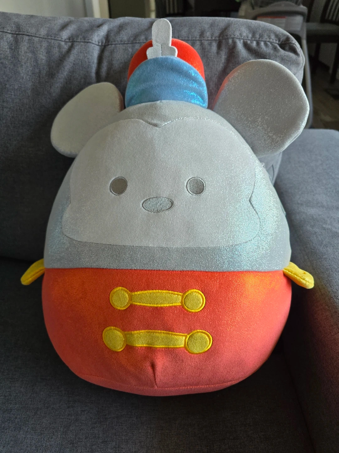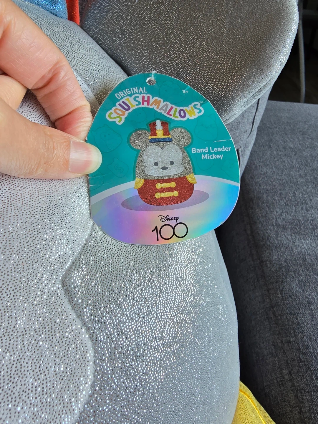 This is a Squishmallows Band Leader Mickey plush toy celebrating Disney 100. It's made with soft, cuddly material. Perfect for collectors or fans of Disney and Squishmallows! About 18".
