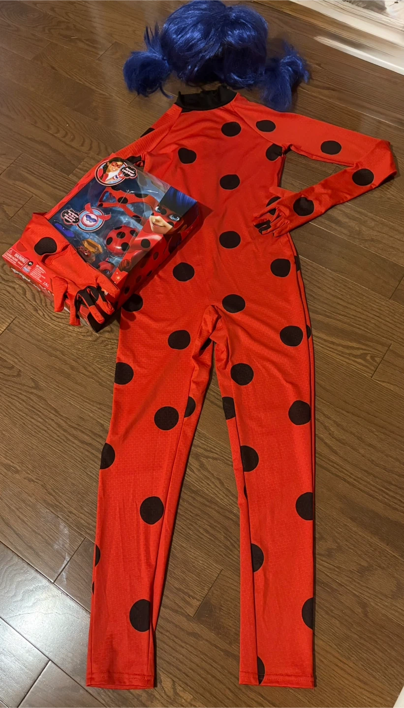 33Selling a Miraculous Ladybug costume (child medium size) with built in gloves and includes a wig. Also including 5 BRAND NEW accessories ladybug mask, Tikki Kwami, color changing Akuma, a working yo yo, and clip on earrings. (Accessories never used and still in original box). Perfect for dress-up or Halloween! Cash only -pick up Richmond hill