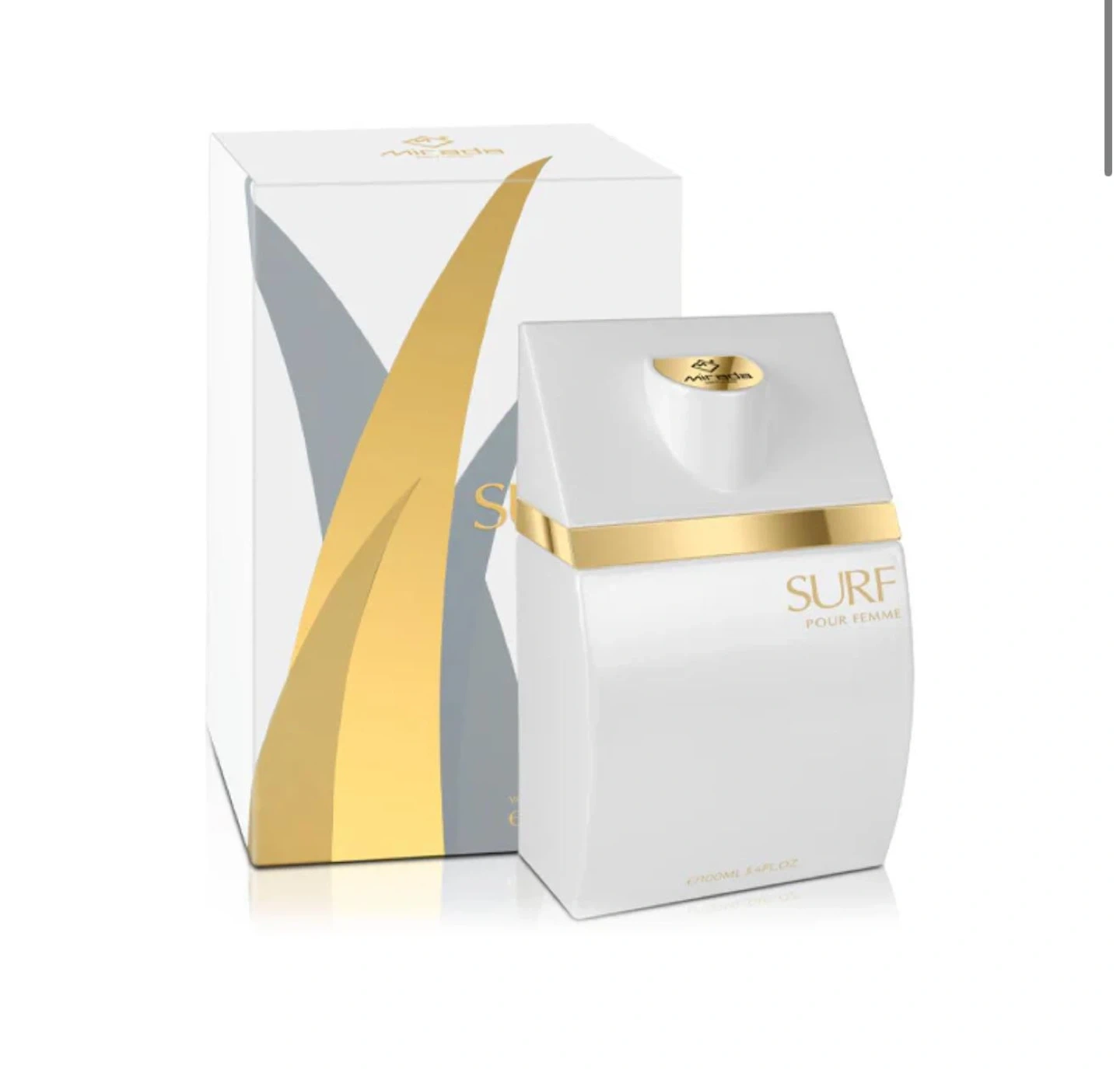 85Selling a bottle of Mirada Surf Pour Femme perfume. It's a 100ml bottle. The fragrance is designed for women. It comes in its original box.