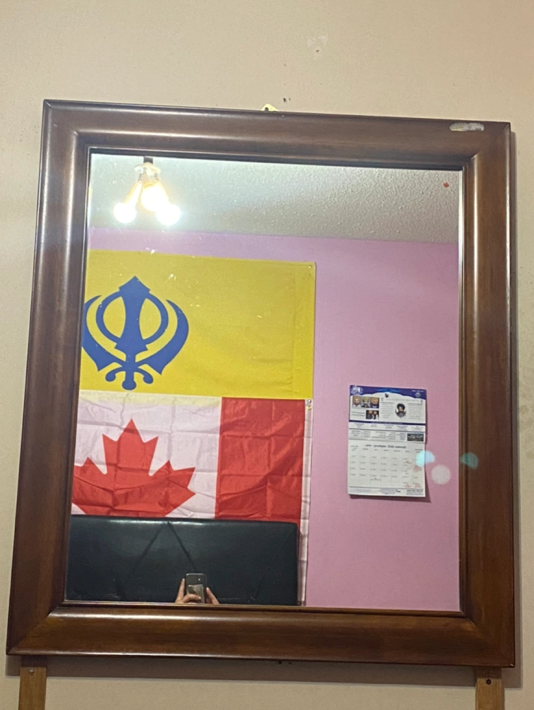 Going to move to other province so need to get rid of it It is a beautiful wall hanging mirrior Maybe around 2feet wide and 3feet tall