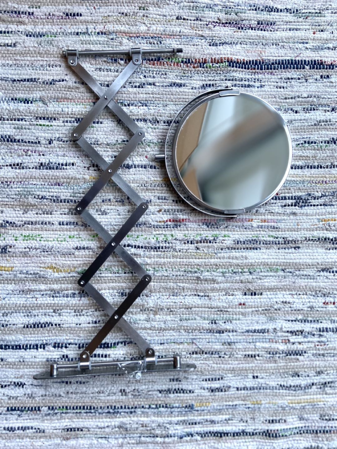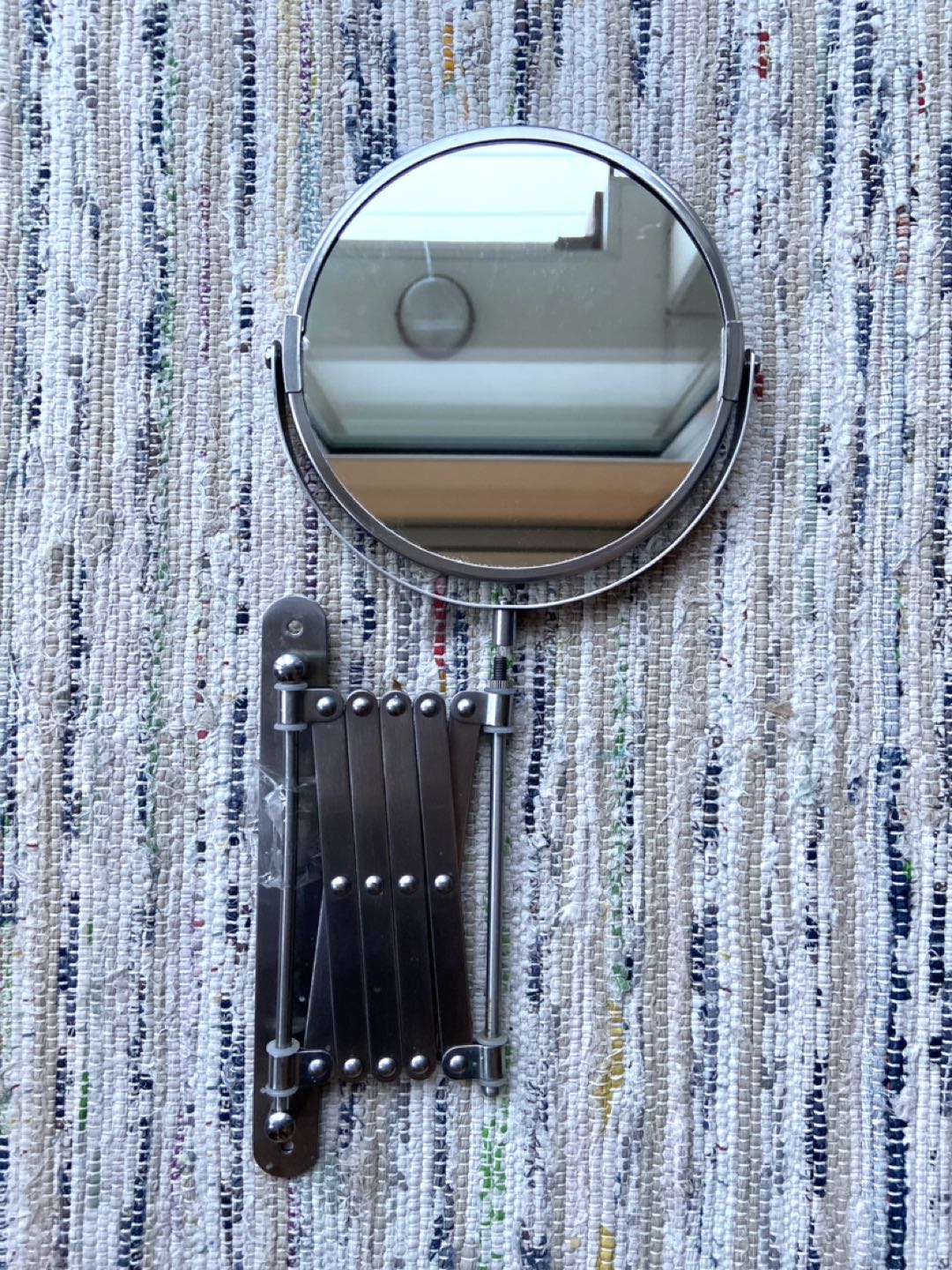 91Little Mirror for bathroom (or other place !). Perfect for makeup or hair removal with magnifying mirror on one side. It doesn’t take much space since it’s expendable, it was very useful in my old bathroom that was very cramped. It has been disassembled for better storage but can be assemble very quick to check it. Pick up in Mount Pleasant, near 6th and Main.