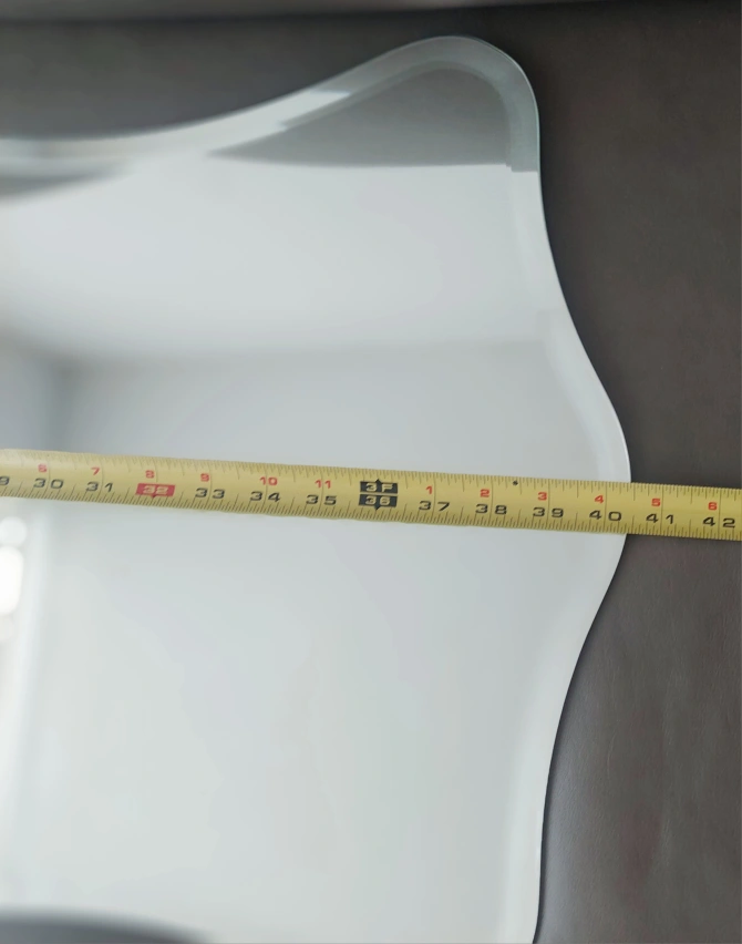 **Zoom into pics for dimensions, noted in inches, cm and mm** - Long, wavy, frameless mirror with metal mounting hardware included. - Can be mounted horizontally or vertically - see pics. - Perfect for hallways, bathroom, living or bedrooms. Minor scratches as pictured, only noticeable up close. *If the post is Active, it’s Available* Price is firm. --> See DT location below for meet-up, walking distance from Rogers centre.