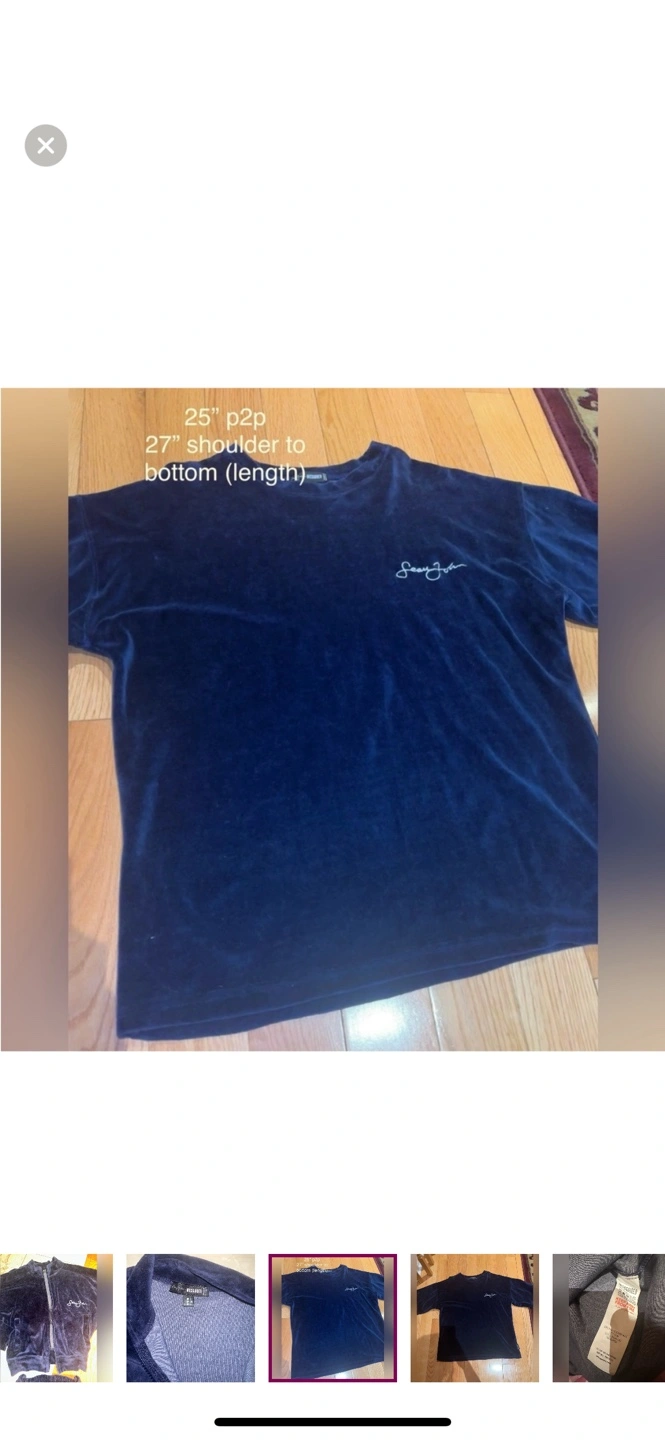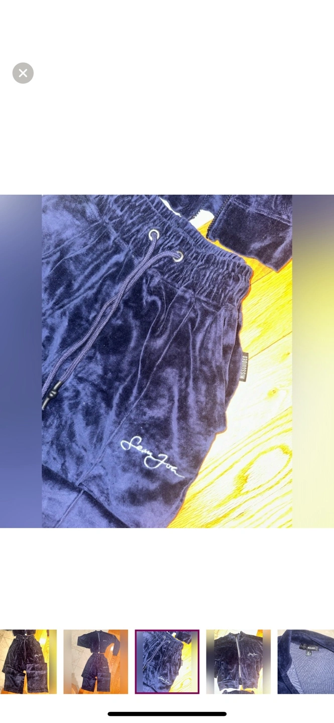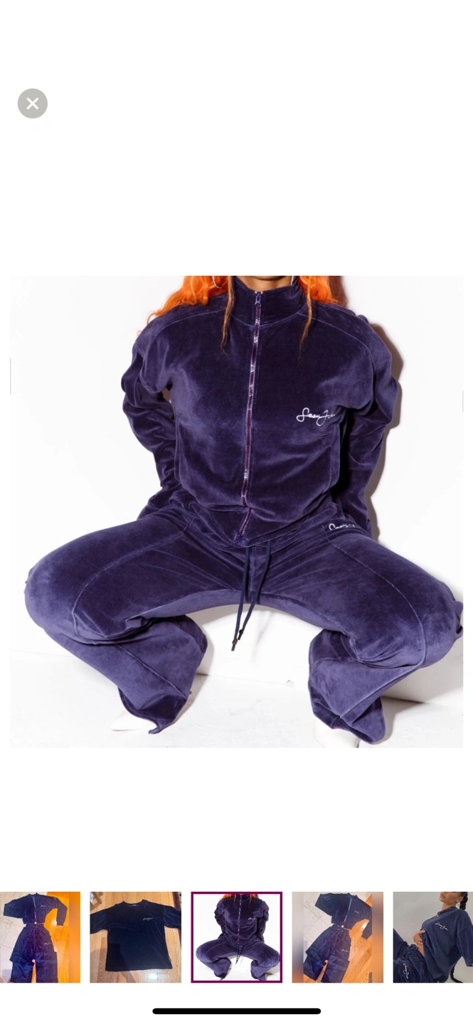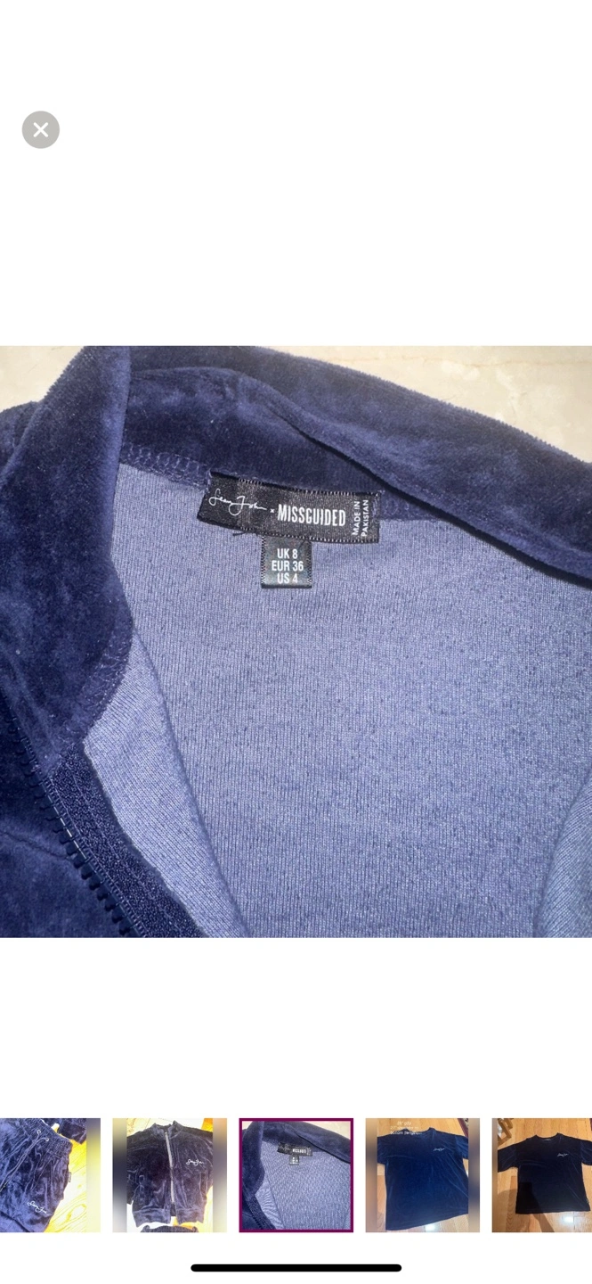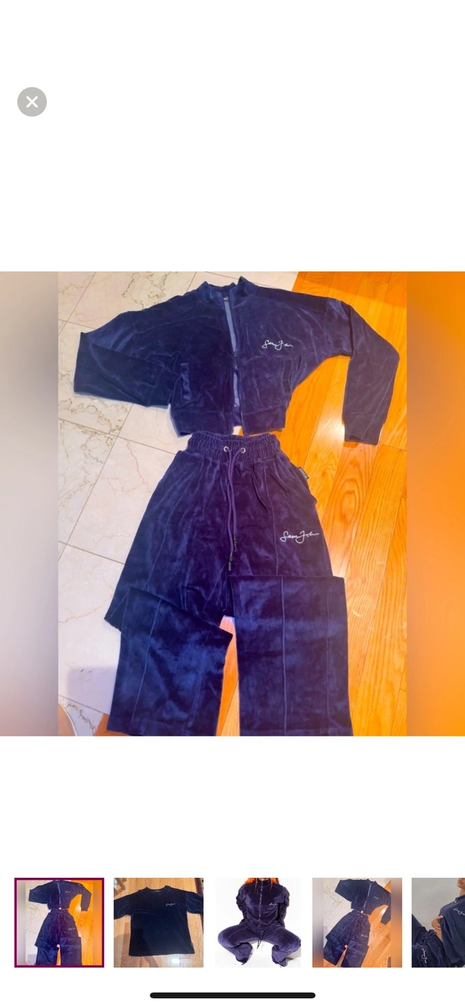 399Women’s size: •US 4 crop velour zip jacket - P2P: 21”, length: 18” •US 2 velour track jogger with draw string - length: 37”, inseam: 25”, waist: 13”-19”(elastic waistband) •US 2 velour navy oversized tee - P2P: 25”, length: 27” - AS SEEN ON BIA - Nothing is more early 2000s than a velour track suit. This cozy set features a high-neck zip-up jacket and a wide-leg - dark navy blue colour with white stitch embroidered logo - excellent condition, barely worn, kept in storage - double zipper jacket with deep pockets - high waisted jogging pant with drawstring Going for a good $$$ Send offers ☑️ ANY QUESTIONS PLEASE ASK AVAILABLE IN Toronto for pick up