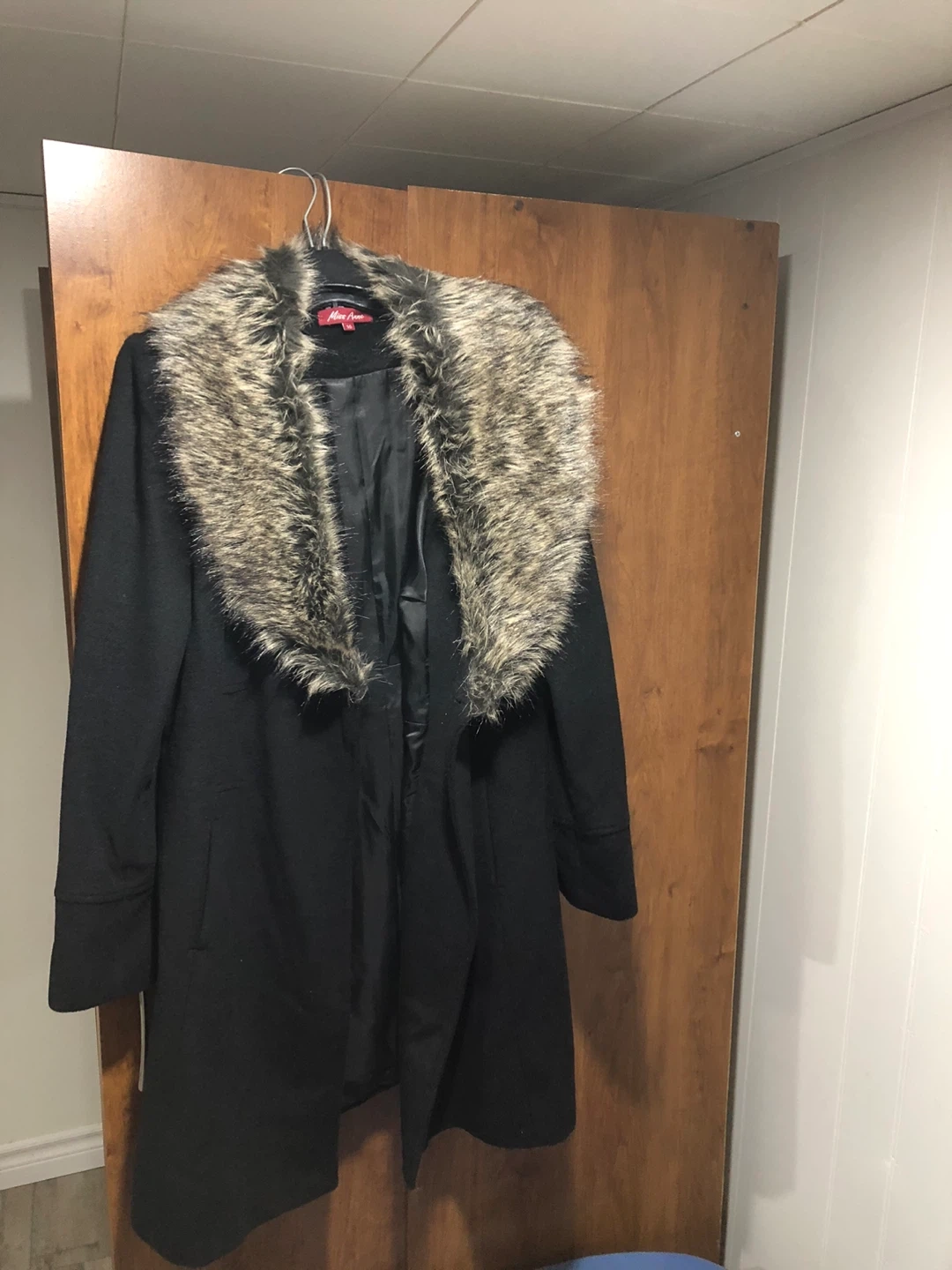 Selling a Miss Anne coat with a faux fur collar in size 16! It's black and in great condition, ready to keep you warm and stylish