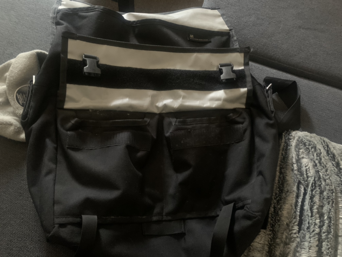 83For sale this high quality weatherproof messenger bag made in USA by mission workshop It holds up to 21 L has a zippered compartment for a laptop up to 13”,seatbelt strap that can be easily switched from left to right and an aluminum buckle . Excellent condition ,These bags retail for $300US More details and specs : https://missionworkshop.com/collections/messenger-bags/products/monty-messenger-bag