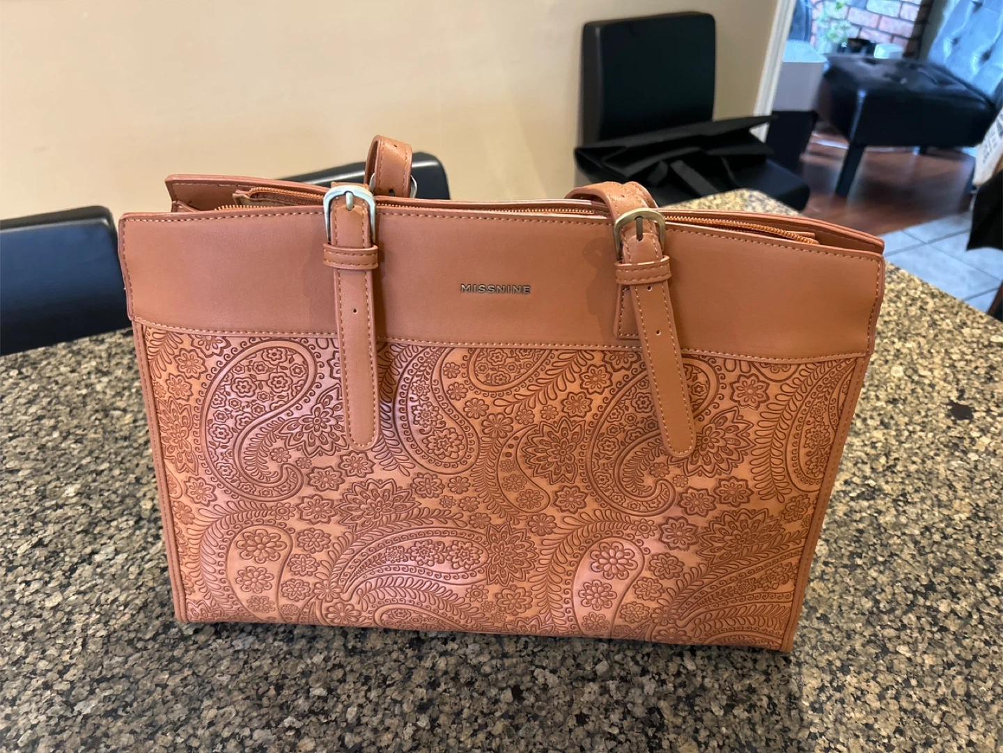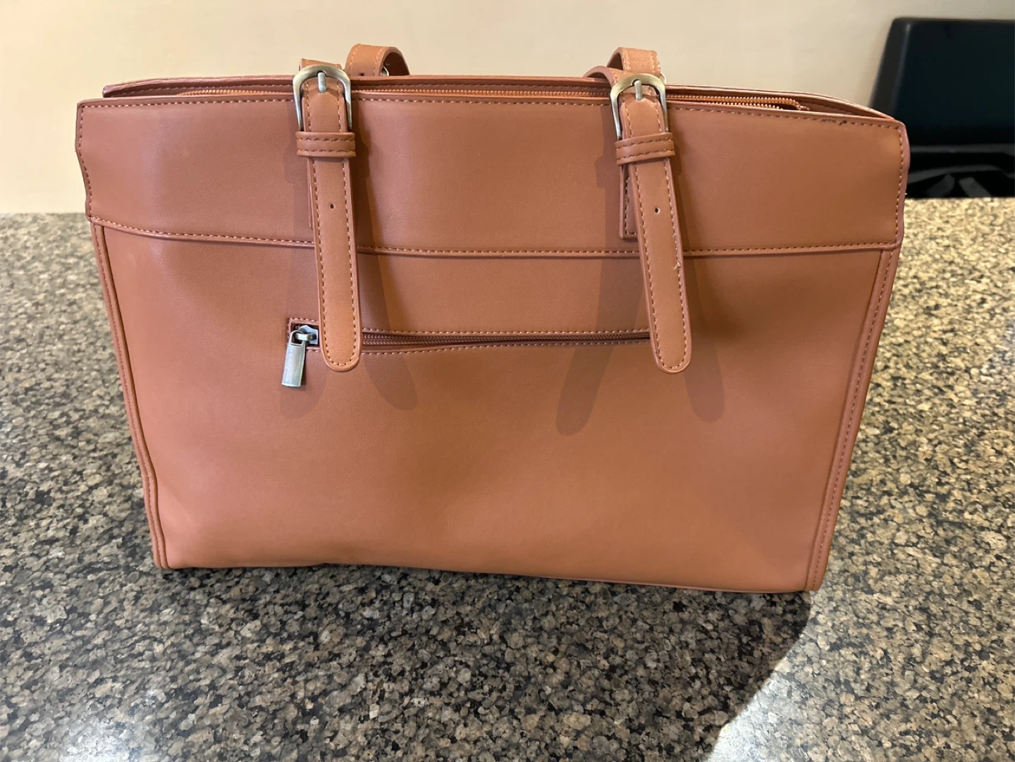 67Spacious Laptop Bag -16.5” L x 12.2” H x 5.1” W, large-capacity main compartment holds 15.6-inch laptop in the separate padded section for better protection, plus binder, books, and documents. And inside patch pockets keep your small items well-organized. With top zipper closure keeping items safely. Versatile Tote Bag - strap can be adjusted to the length that fits your needs. Handle drop: 7.5'' -13.5