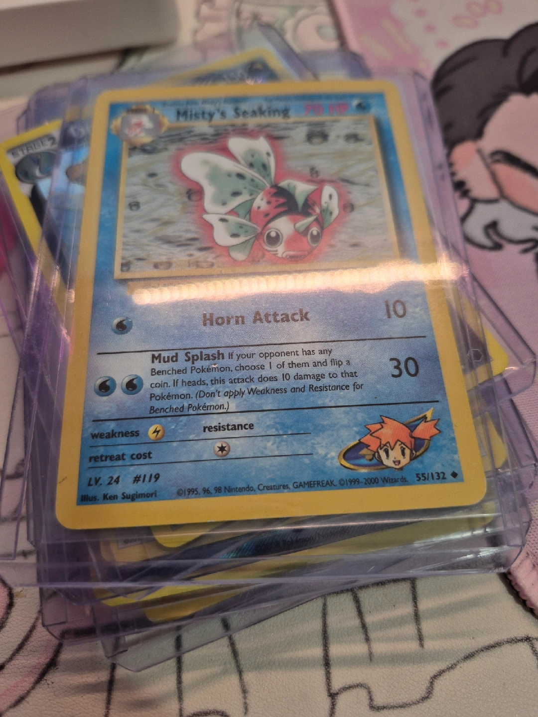 49some white on top of card on the back (photographed) pick up only i have more cards for sale on my profile minimum 5 dollar total purchase I am an amateur at inspecting pokemon cards. The condition is just an estimate, and i was a casual player in high school, so i'm not sure if the condition im listing would not meet your subjective opinion. I dont think any card i own is PSA 10. thank you