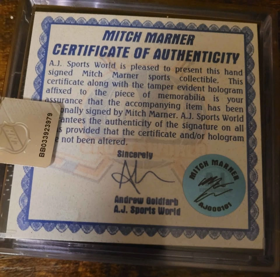 15Mitch Marner autographed Puck with certificate of authenticity. $200