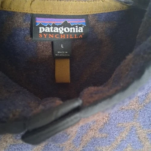 Patagonia Aztec Synchilla Snap Button Fleece Jacket, Camo, Size Mens L. Condition is Pre-owned - Excellent.