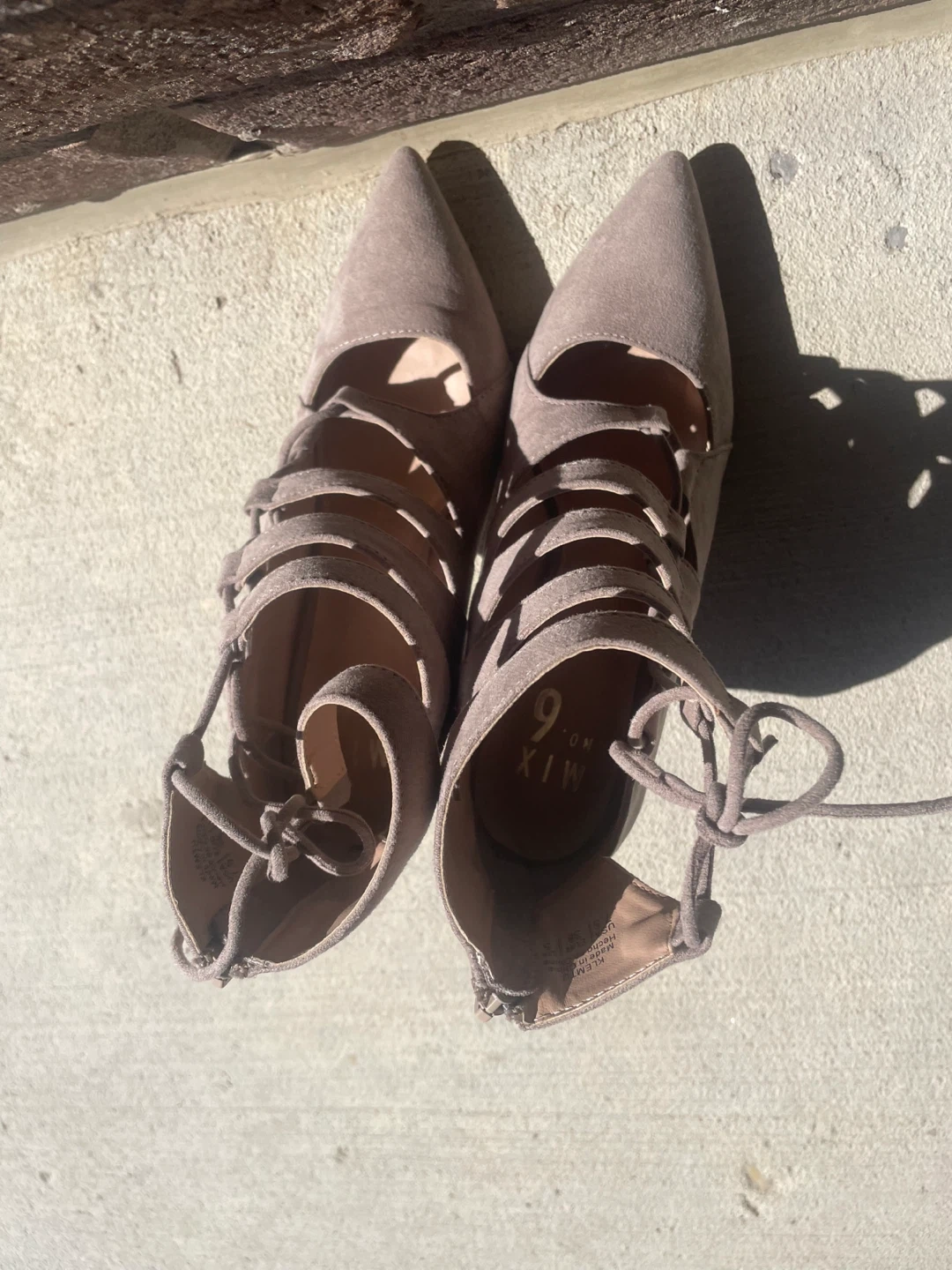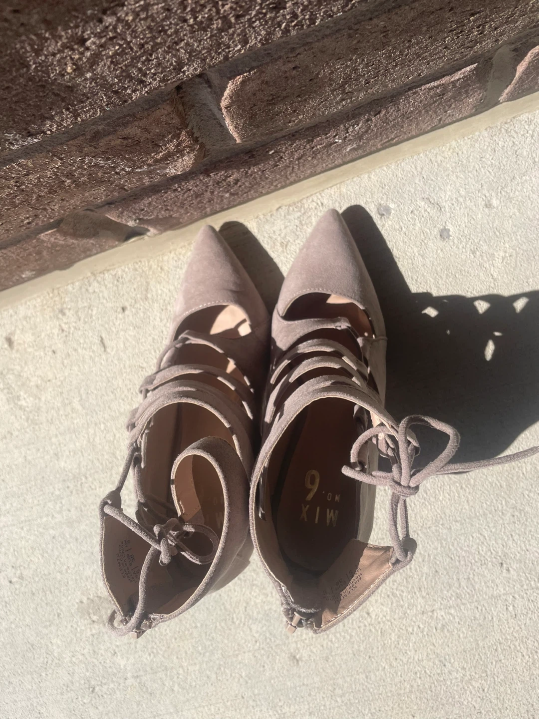 Selling a pair of Mix No. 6 heels in size 7.5 These stylish heels have a unique lace-up design and are perfect for a night out or a special occasion. They are in great condition and ready for a new home!