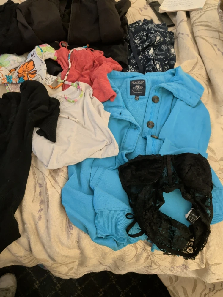 80Selling a mixed lot of clothing items. There are various styles and colours, including black, blue, and grey. Take a look at the photos to see what's included!