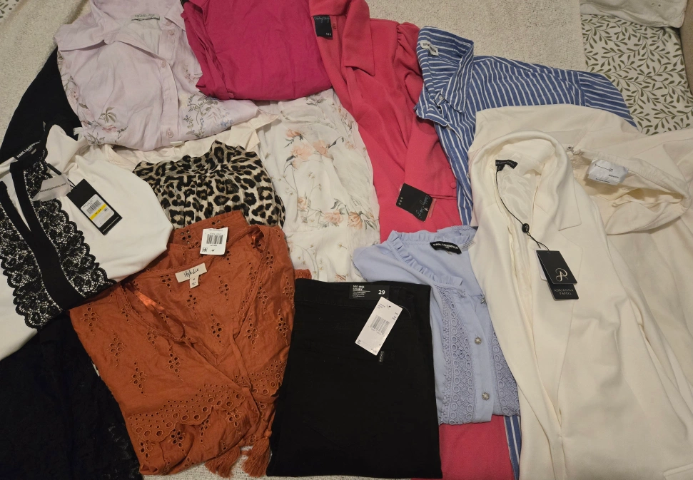 Selling a mixed lot of clothing items including pieces from Karl Lagerfeld, Buffalo, and Adrianna Papell. Various sizes and styles included, perfect for a wardrobe refresh! Many New with tags! **$10 off the total price when buying two listings. $15 off three listings.