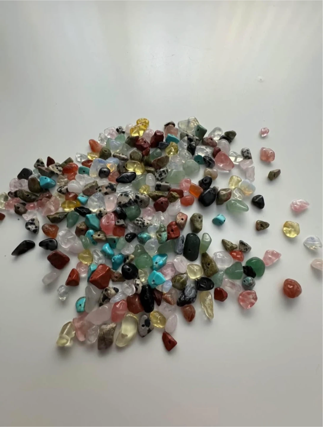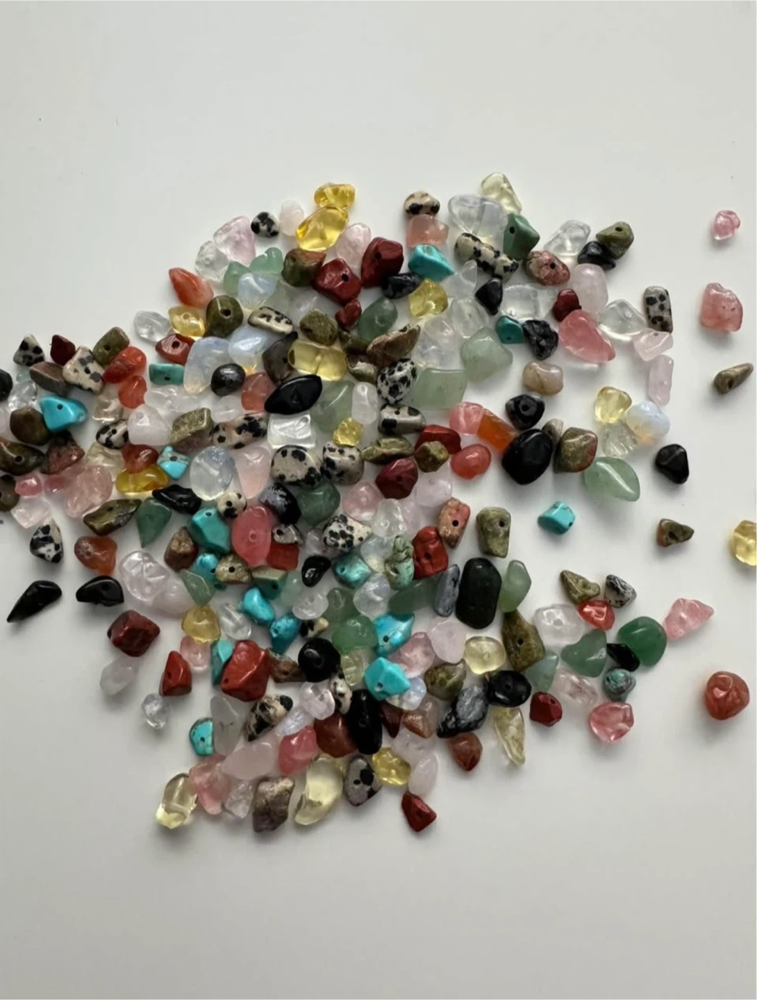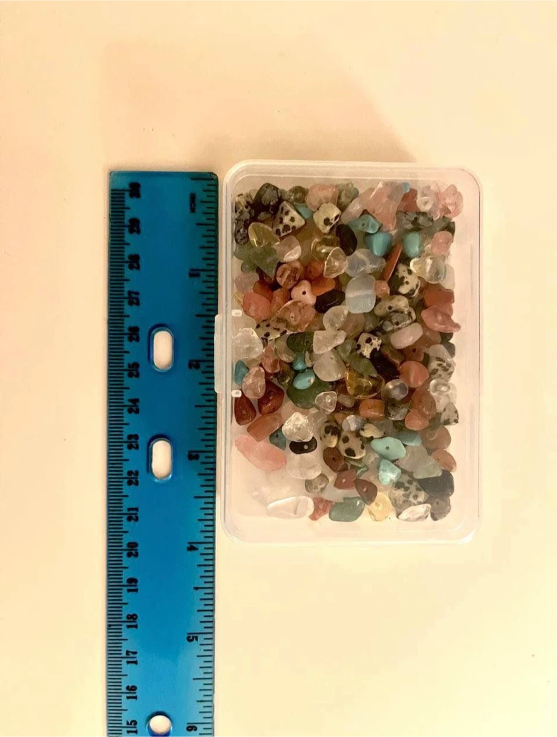 Selling a collection of mixed gemstone chips! These colourful stones are perfect for crafts, jewelry making, or decoration. They come in a handy plastic storage box for easy organization and access.