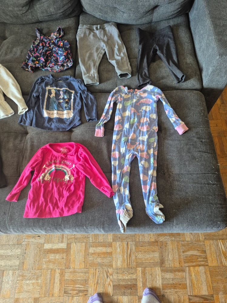 60Selling a bundle of girls' clothing. Various sizes and styles included. Perfect for stocking up on everyday wear! Sizes are 18 to 24 months. I have 1 full garbage $60 or best offer.