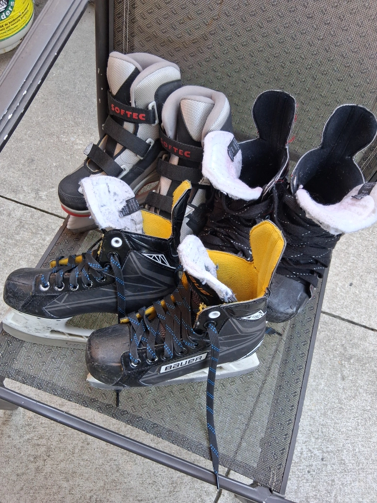 Selling a mixed lot of used hockey skates! Includes skates from CCM, Bauer, and Softec. Great for recreational skating or pond hockey. See photos for condition details. Kids sizes sizes 12 to 3