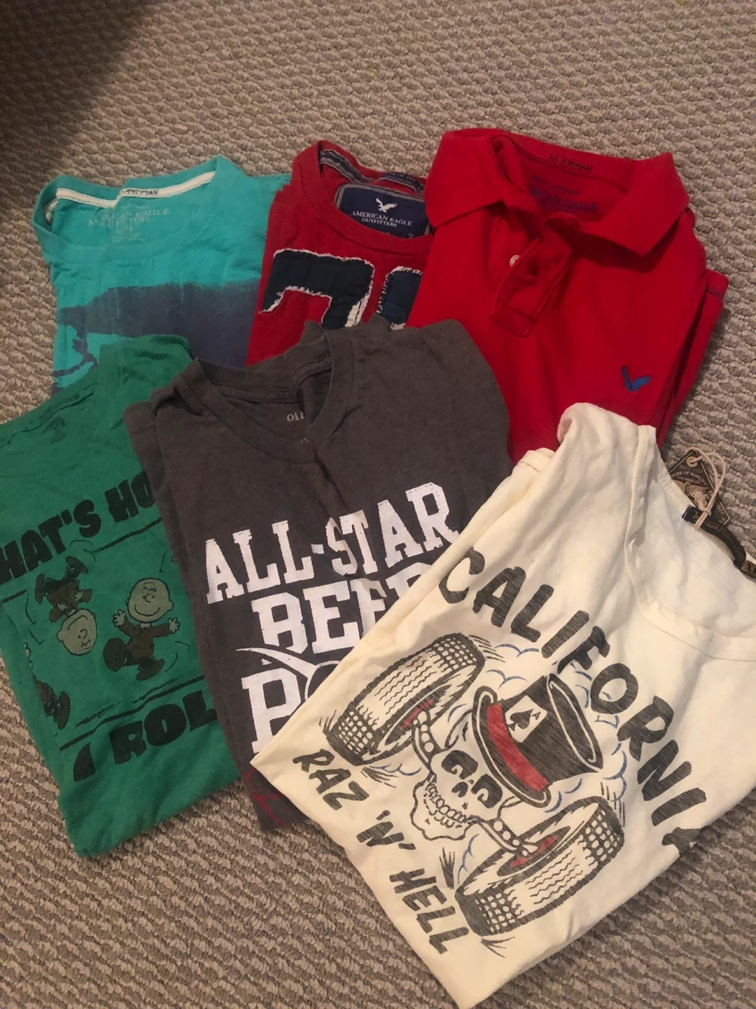 34Selling a mixed lot of t-shirts! Brands include American Eagle and others. Great for casual wear. $5 each or 3 for $12